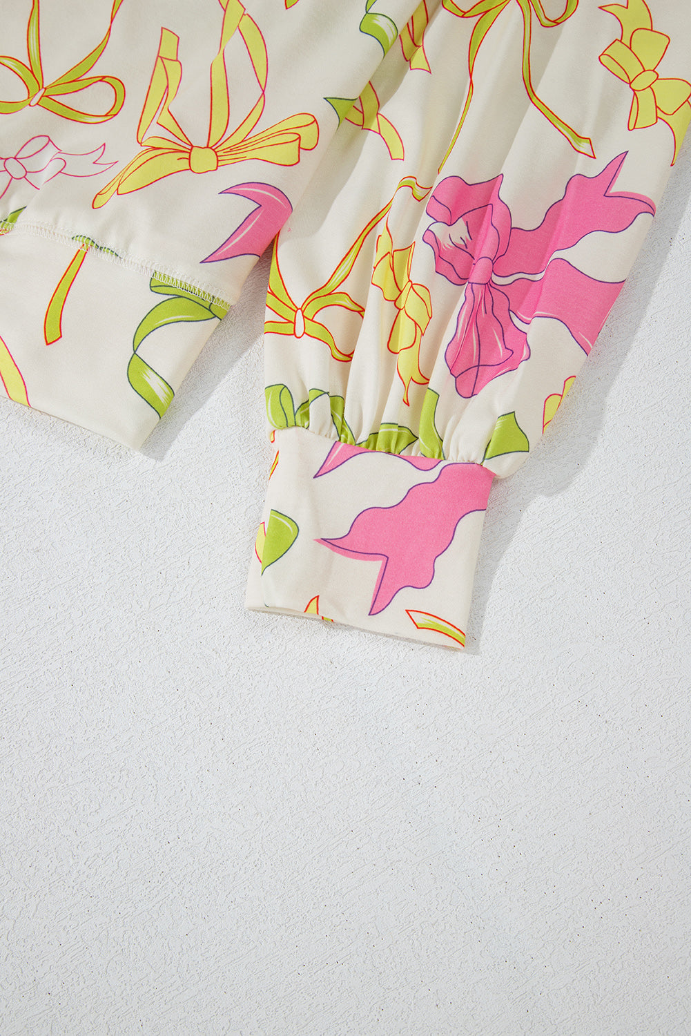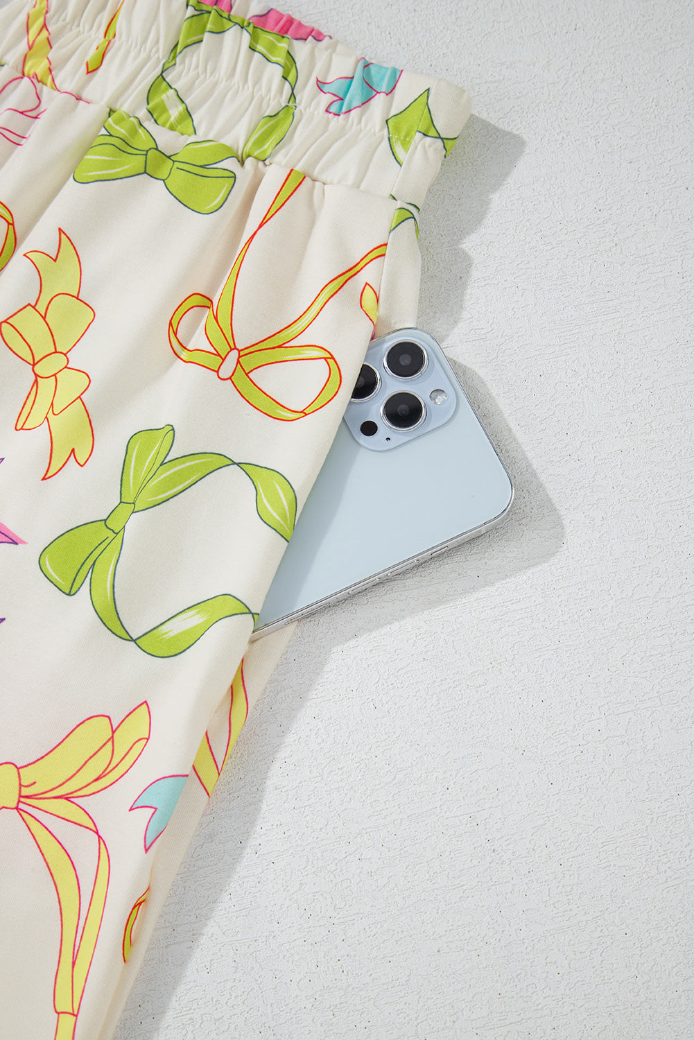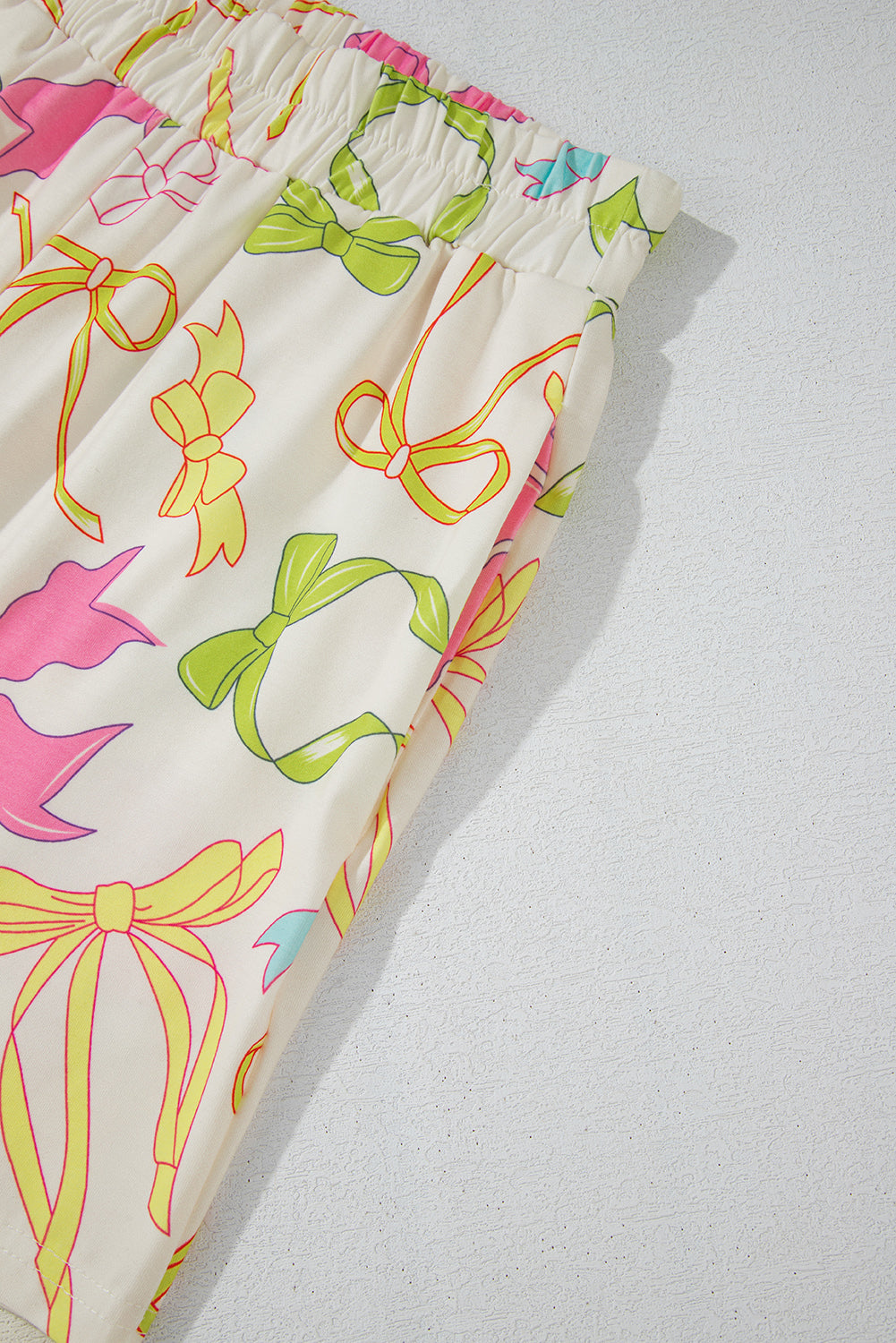Multicolour Bowknot Pattern Long Sleeve Top and Shorts Set