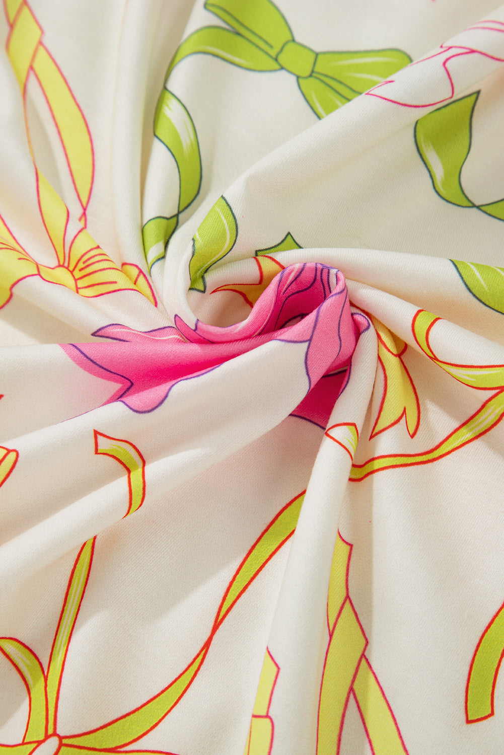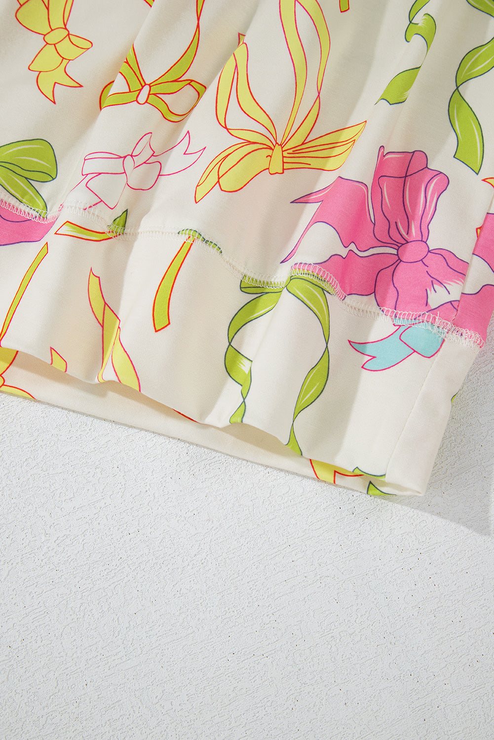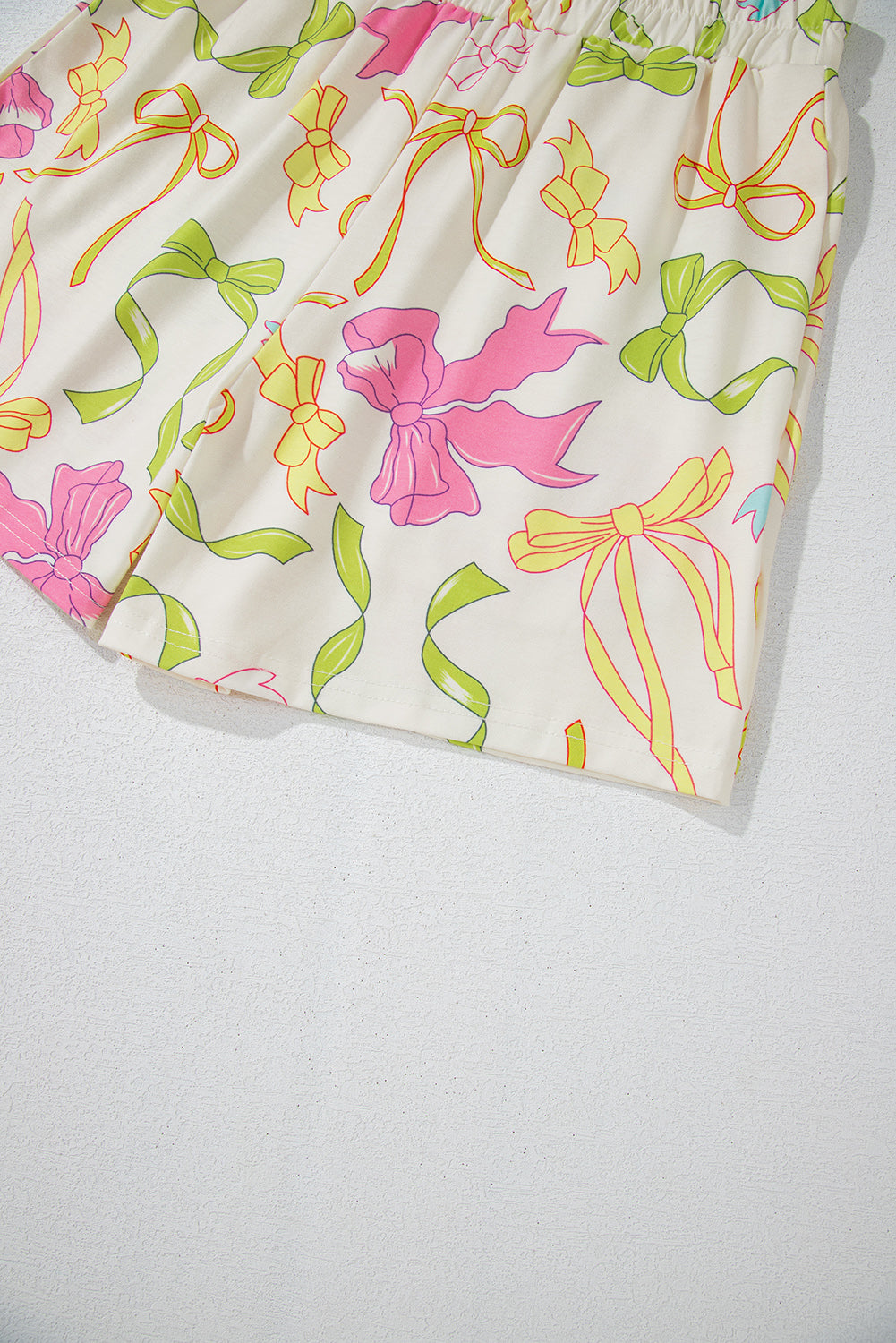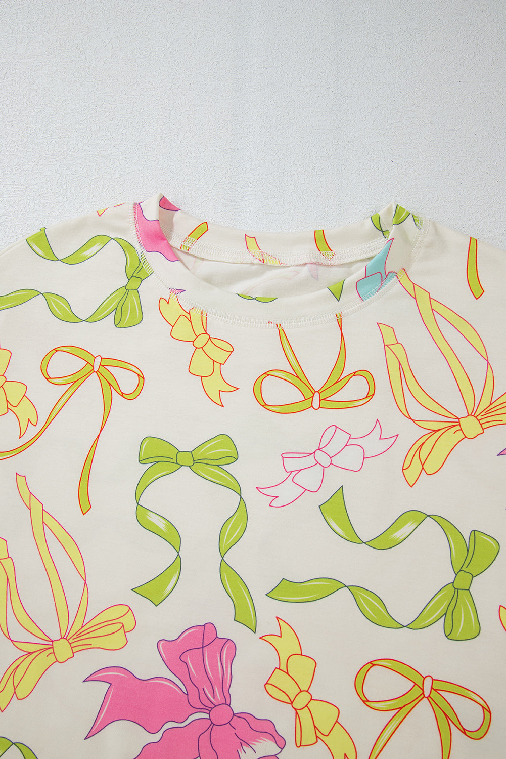 Multicolour Bowknot Pattern Long Sleeve Top and Shorts Set