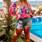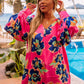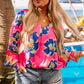 Rose Floral Pattern V Neck Balloon Sleeve Plus Size Blouse
