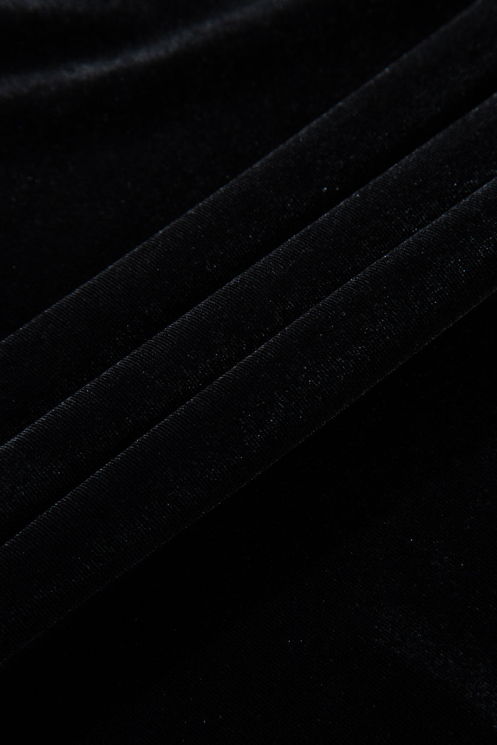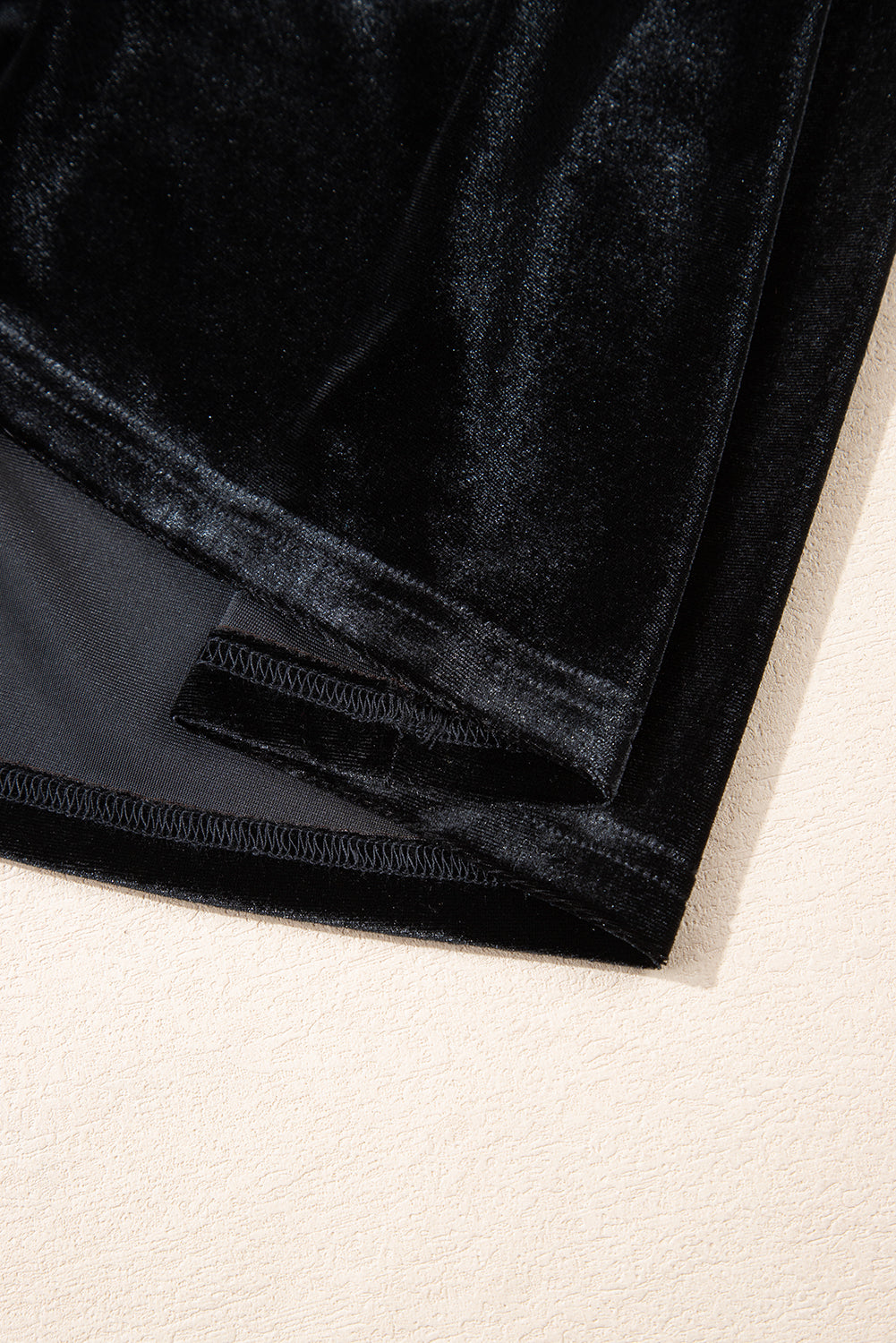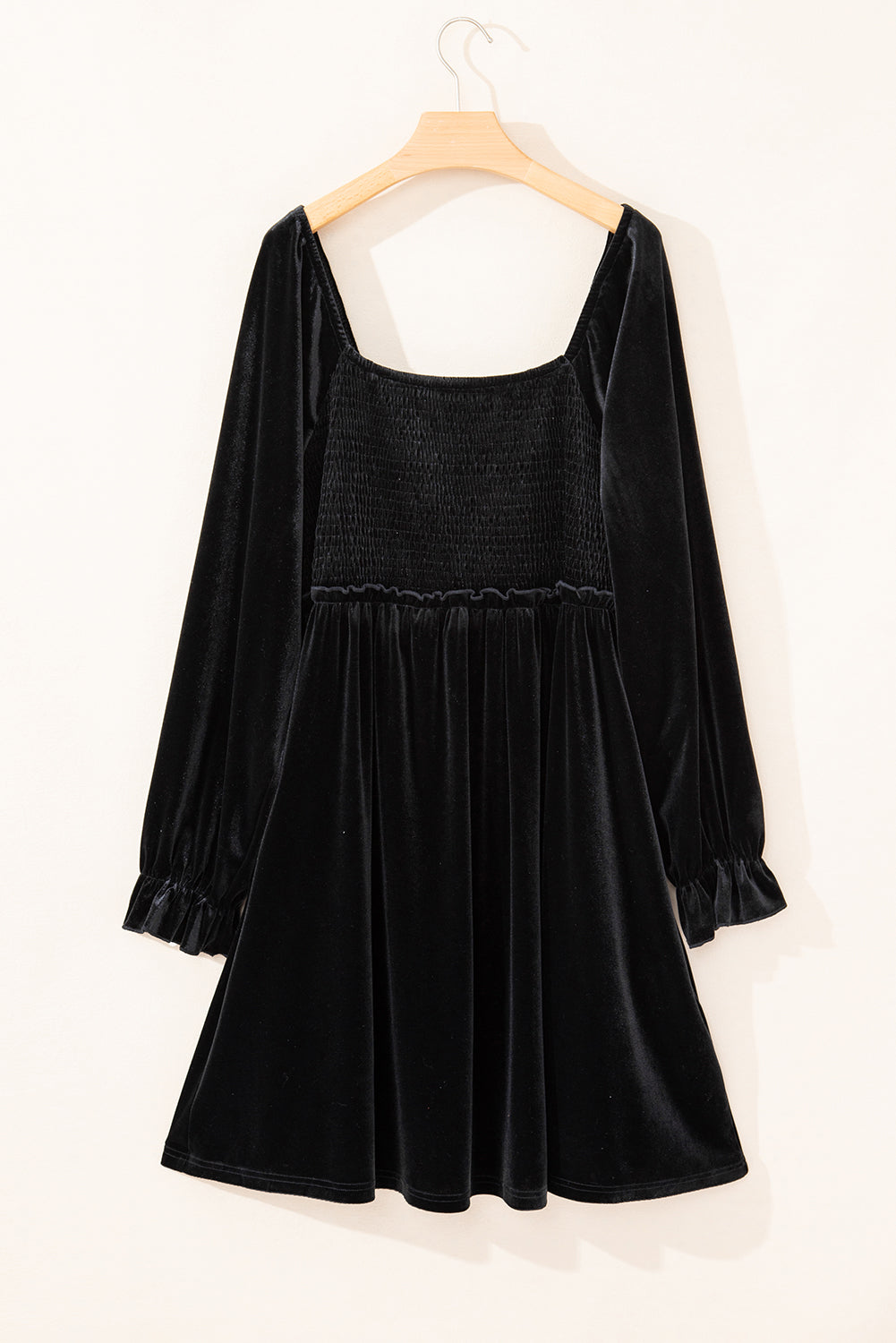 Black Velvet Flounce Sleeve Shirred Bodice Plus Babydoll Dress