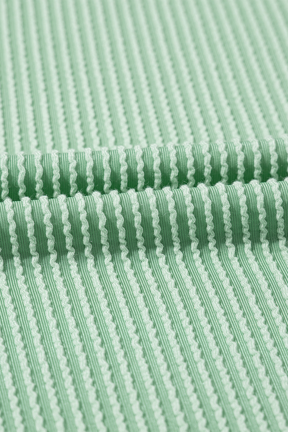 Mint Green Corded Knit Crew Neck Puff Sleeve Shift Mini Dress