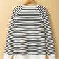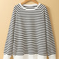 Black Stripe Raglan Sleeve Side Slits Loose Sweatshirt