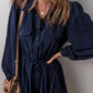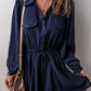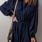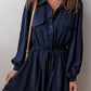 Navy Blue Solid Chest Pockets Tunic Shirt Mini Dress