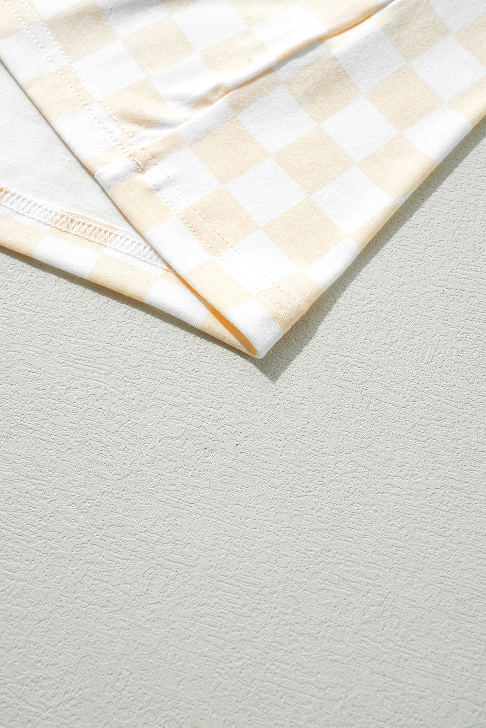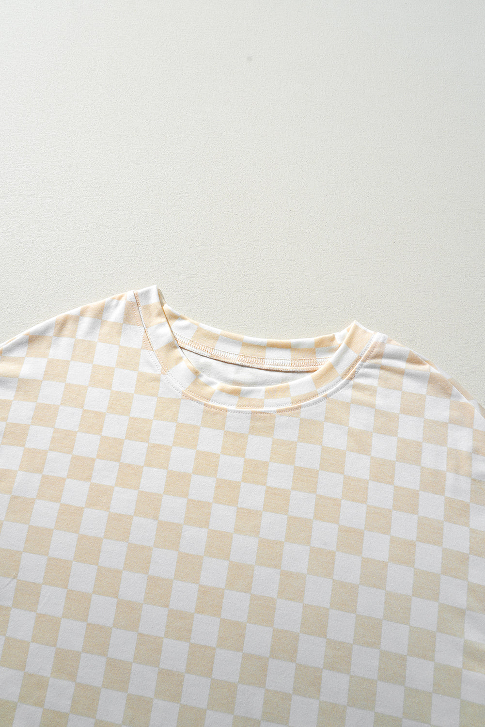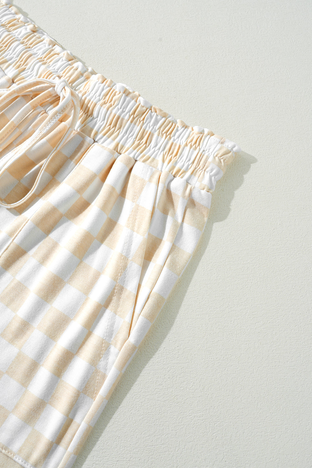 Beige Checkered Print Long Sleeve Top and Pants Lounge Set