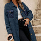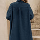 Blue Contrast Flap Pocket Single Breasted Teddy Coat