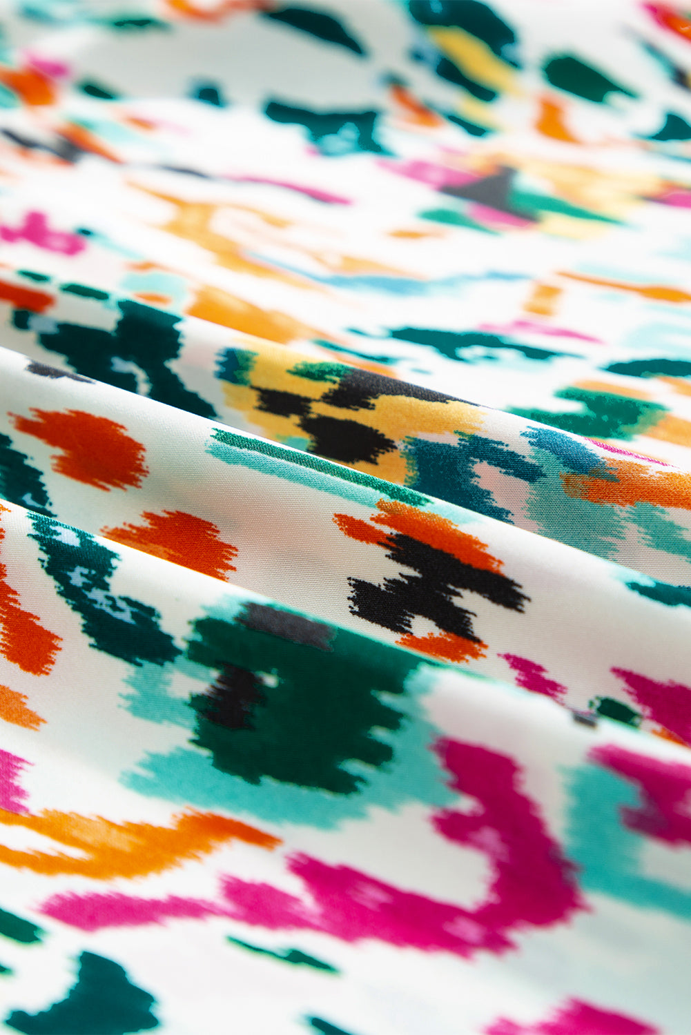 Green Abstract Print Split Neck Ruffle Sleeve Blouse