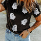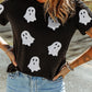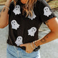 Black Glitter Ghost Pattern Crew Neck Halloween T Shirt