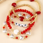 Fiery Red XOXO Heart Beaded 4pcs Layered Bracelet