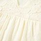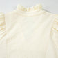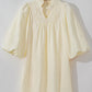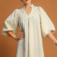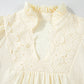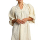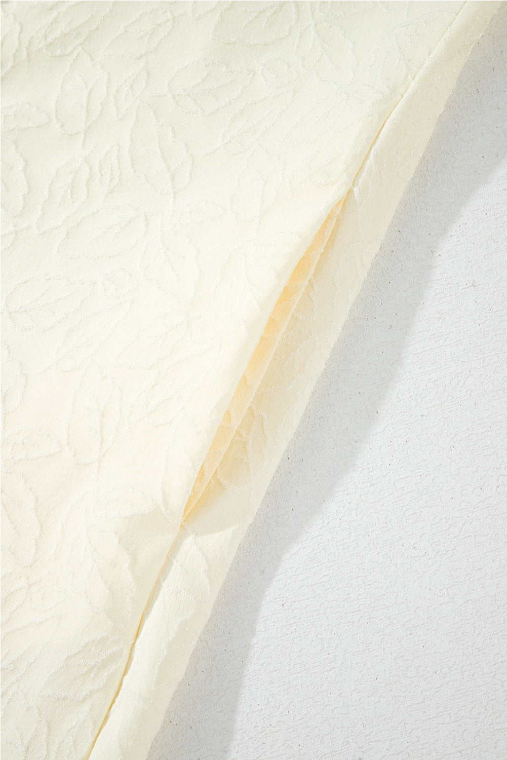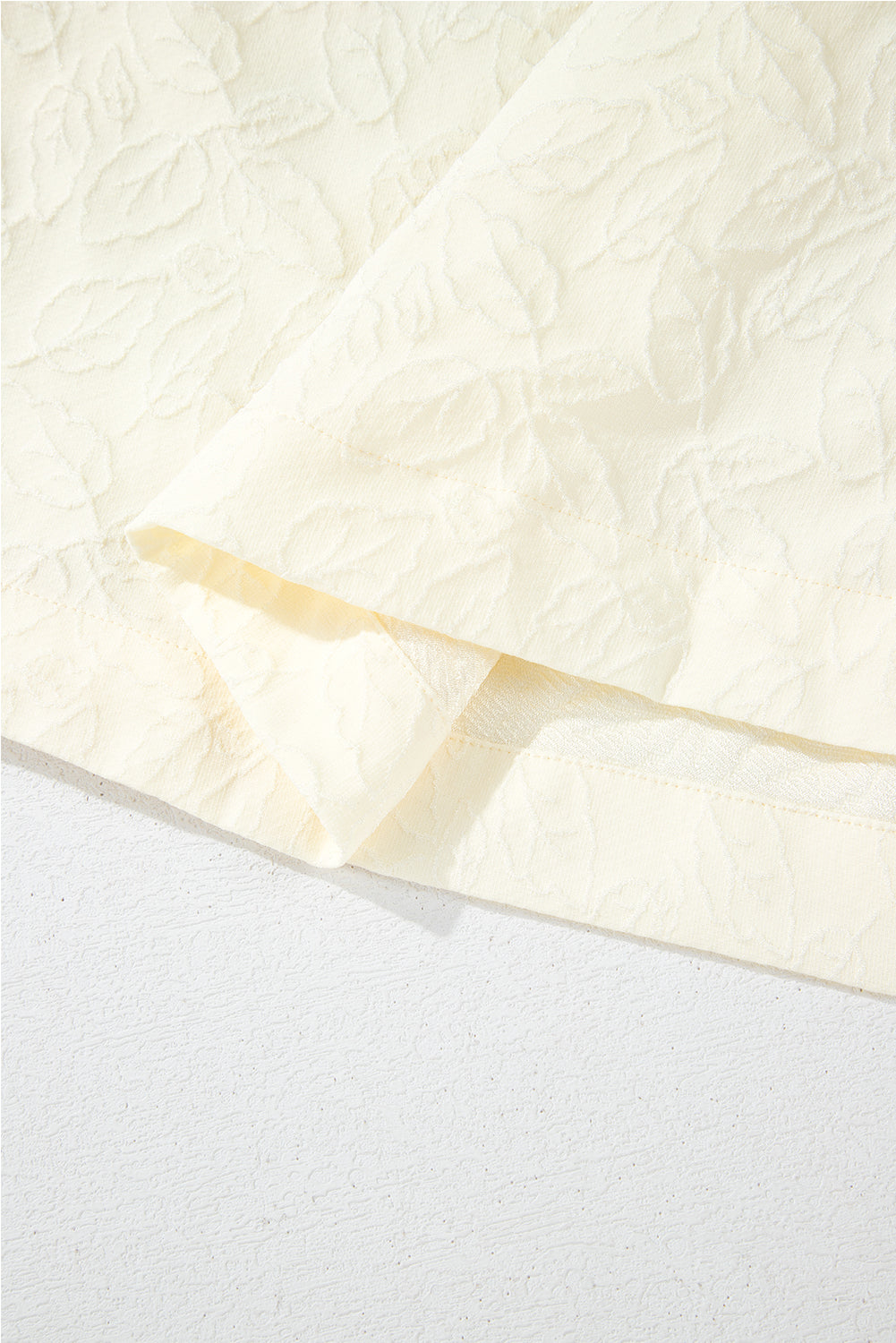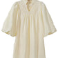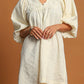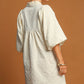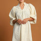 White Floral Textured Bubble Sleeve Frilled Notched Neck Dress