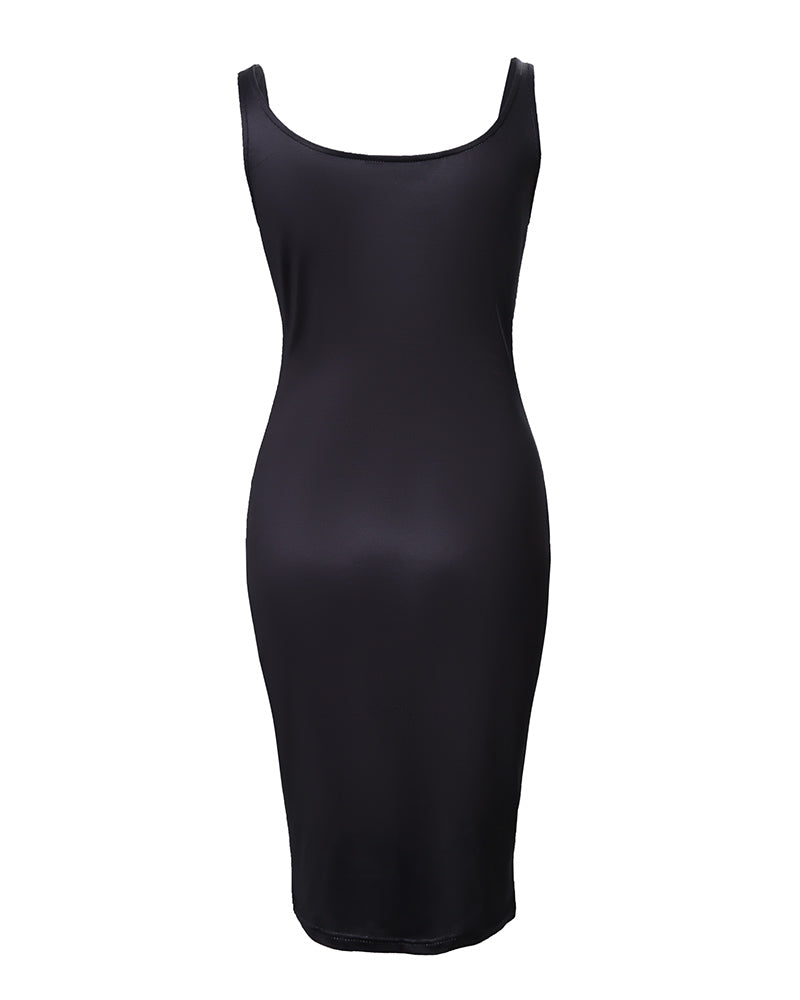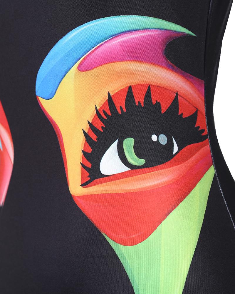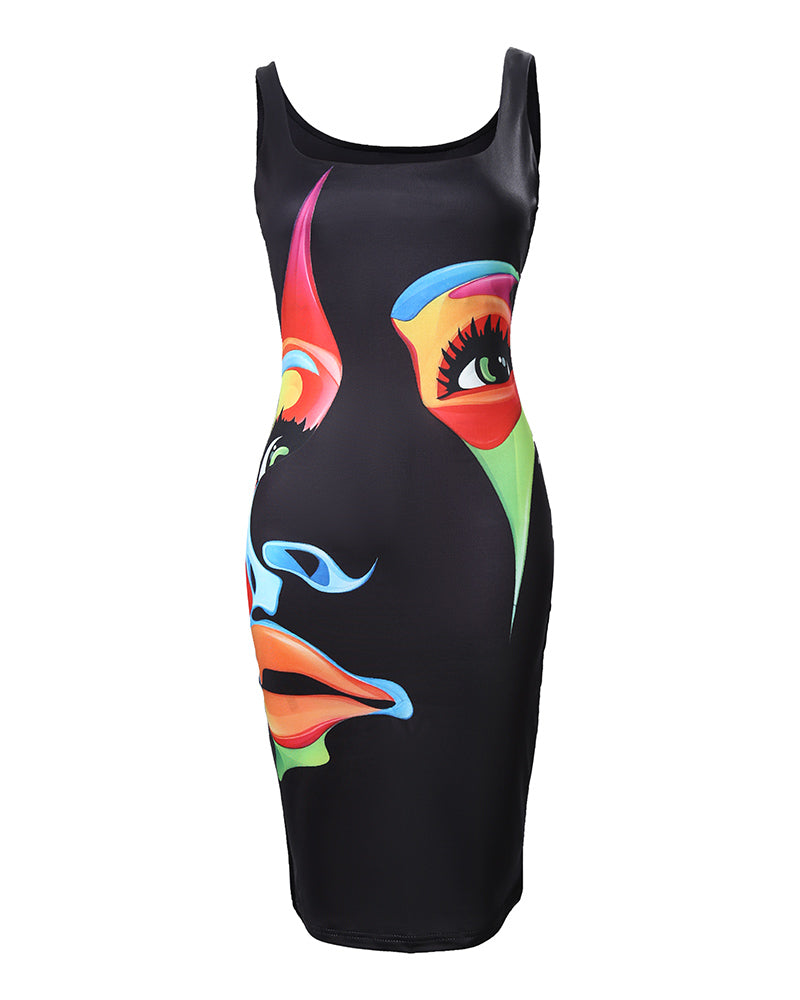 Abstract Figure Print Sleeveless U Neck Bodycon Dress