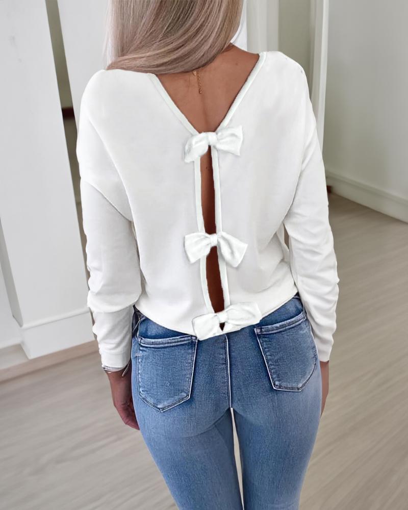 Abstract Jacquard Pattern Bowknot Decor Hollow Out Top