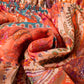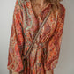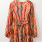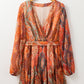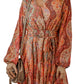 Orange Boho Paisley Print Long Sleeve Pleated Belted Mini Dress