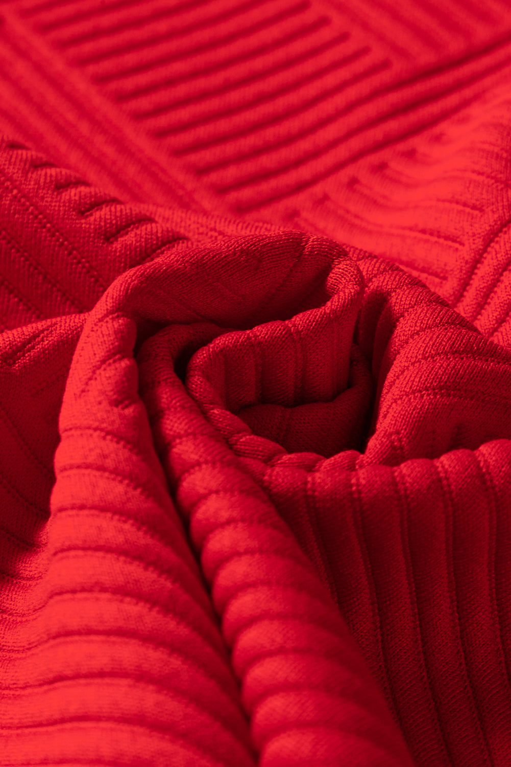 Fiery Red Textured Collared V Neck Puff Short Sleeve Shift Mini Dress