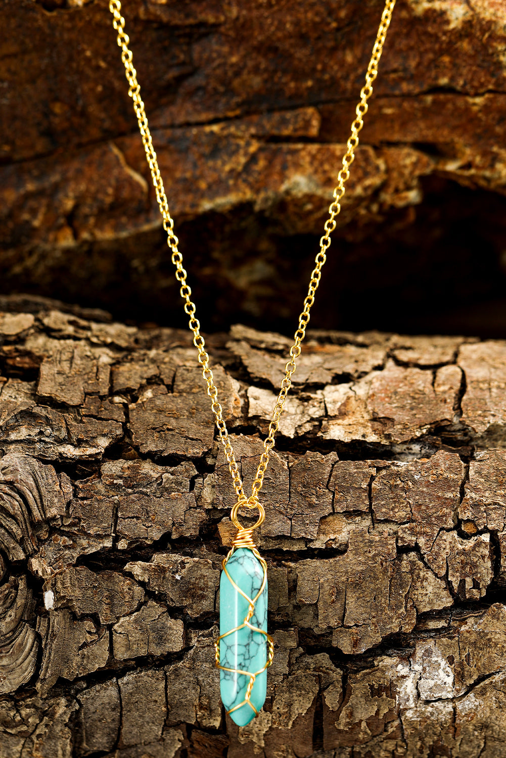 Iceland Blue Gold Wire Wrapped Turquoise Pendant Necklace