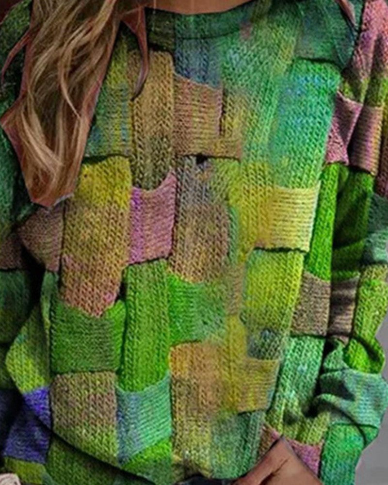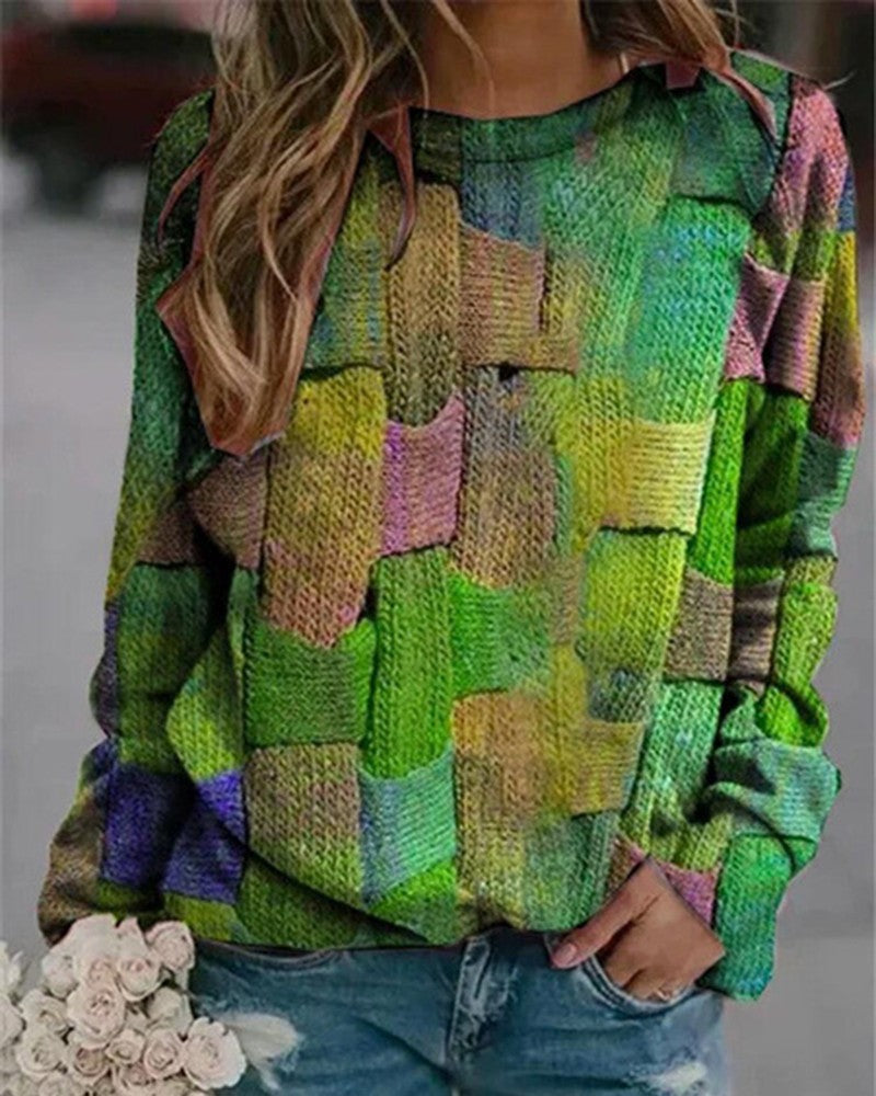 Allover Print Round Neck Long Sleeve Sweatshirt