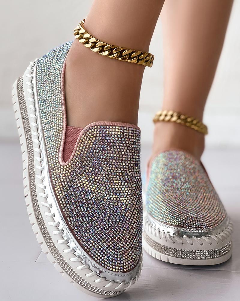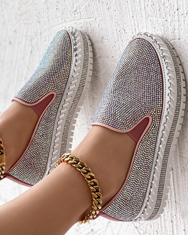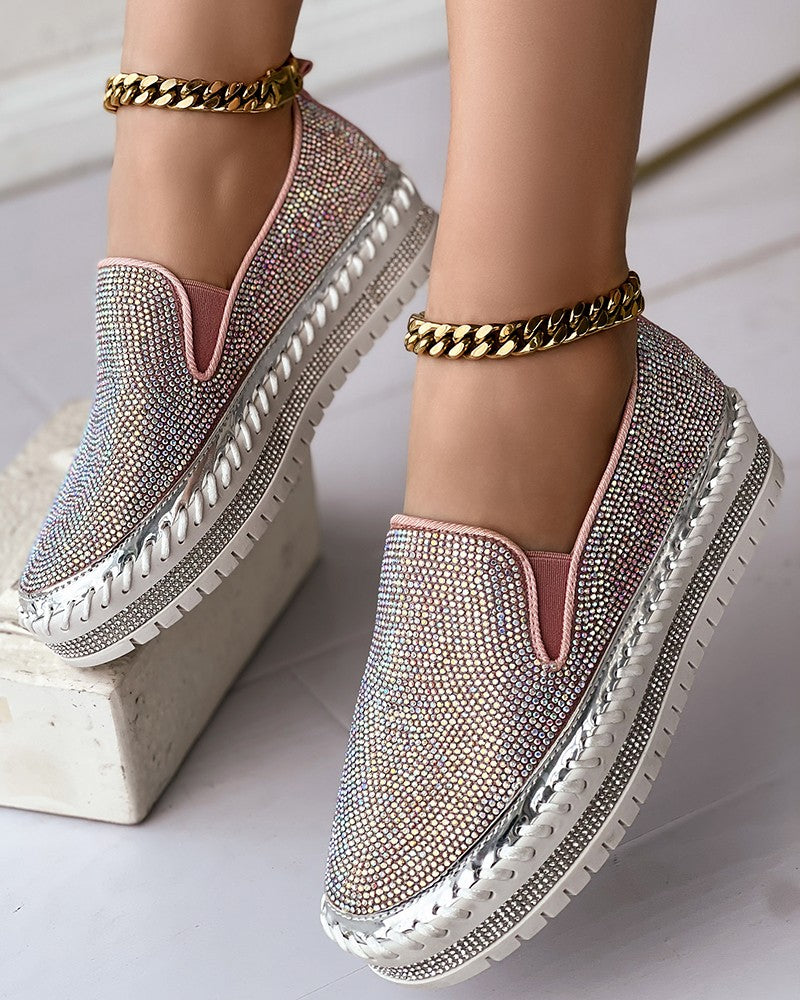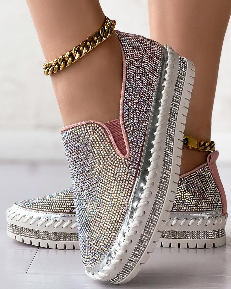 Allover Rhinestone Contrast Binding Slip On Sneakers