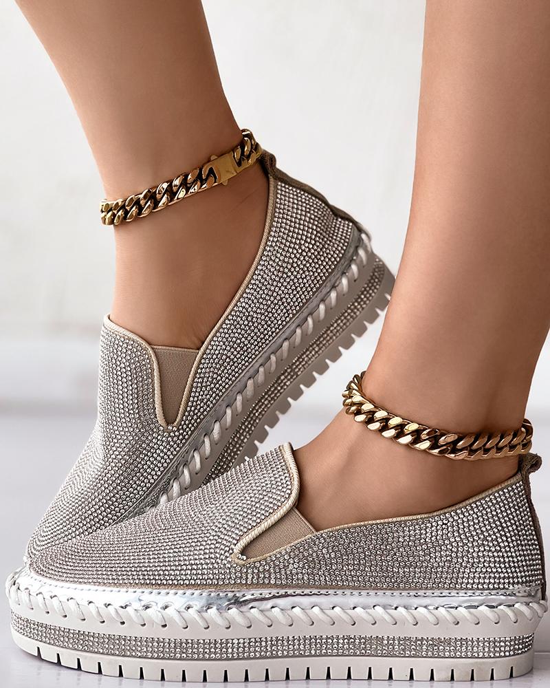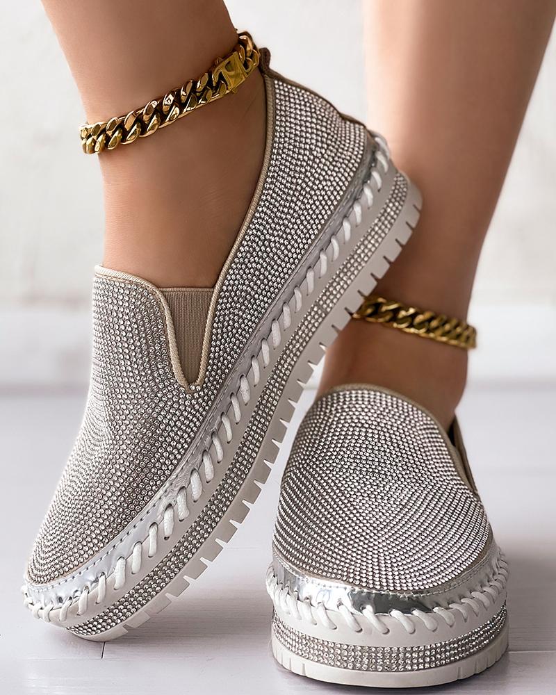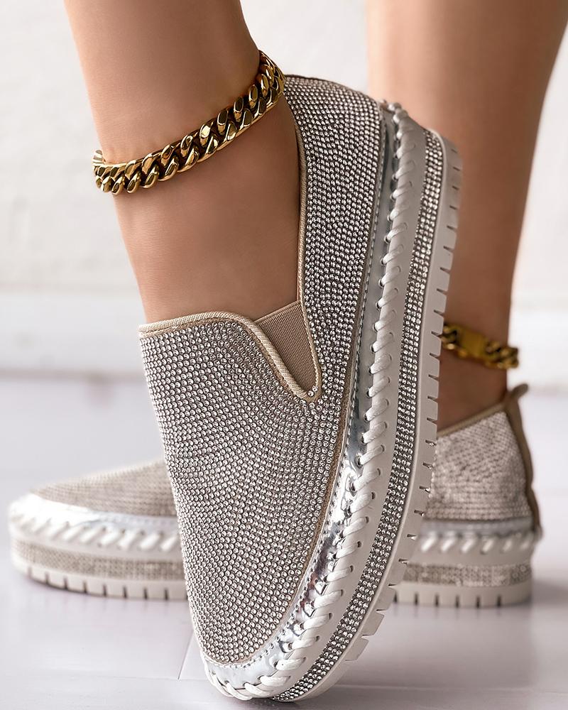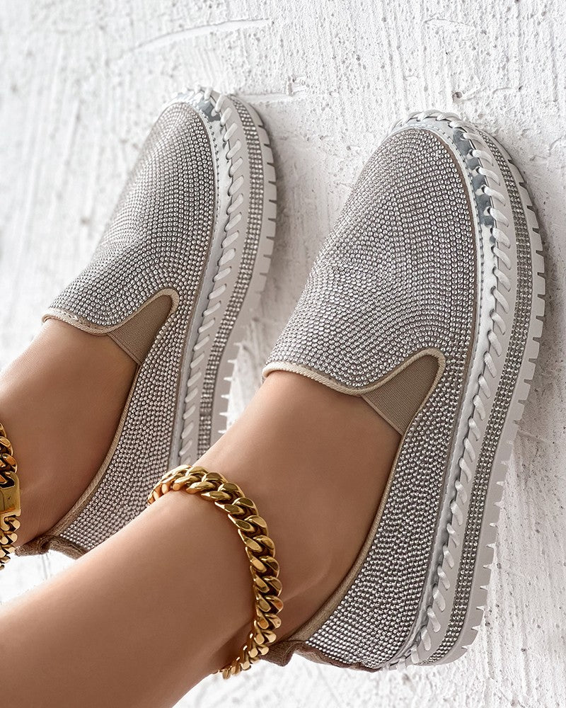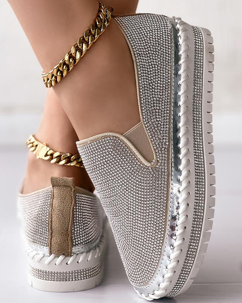 Allover Rhinestone Contrast Binding Slip On Sneakers