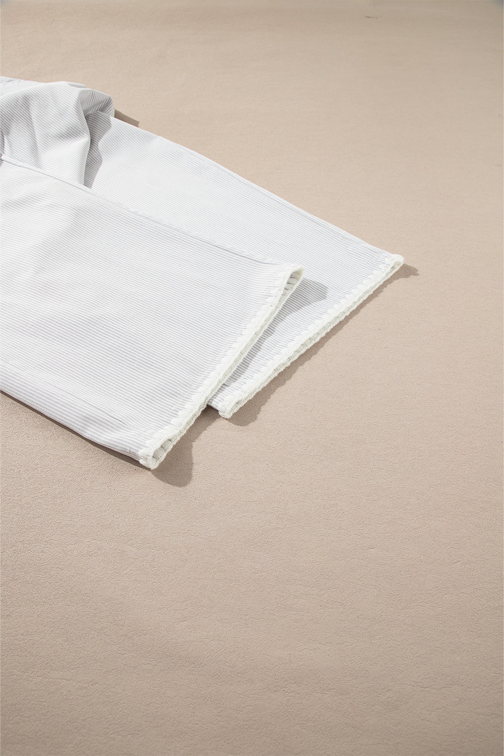Gray Stripe Zipped up Collar Ruffled Sleeve Tee and Wide Leg Pants 2pcs Outfit