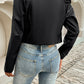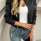 Black Faux Leather Gigot Sleeve Open Front Jacket