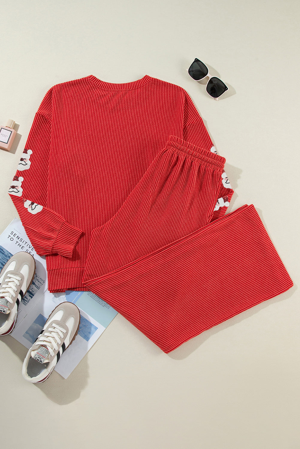 Fiery Red HOLLY Letter and Sequined Father Christmas Corded 2pcs Set