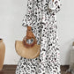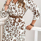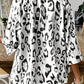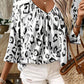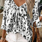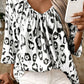 Black Leopard Print Ruched V Neck 3/4 Sleeve Blouse
