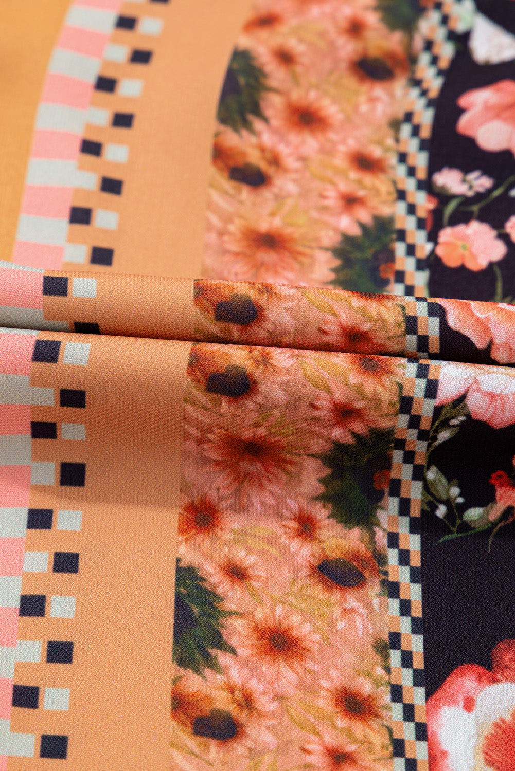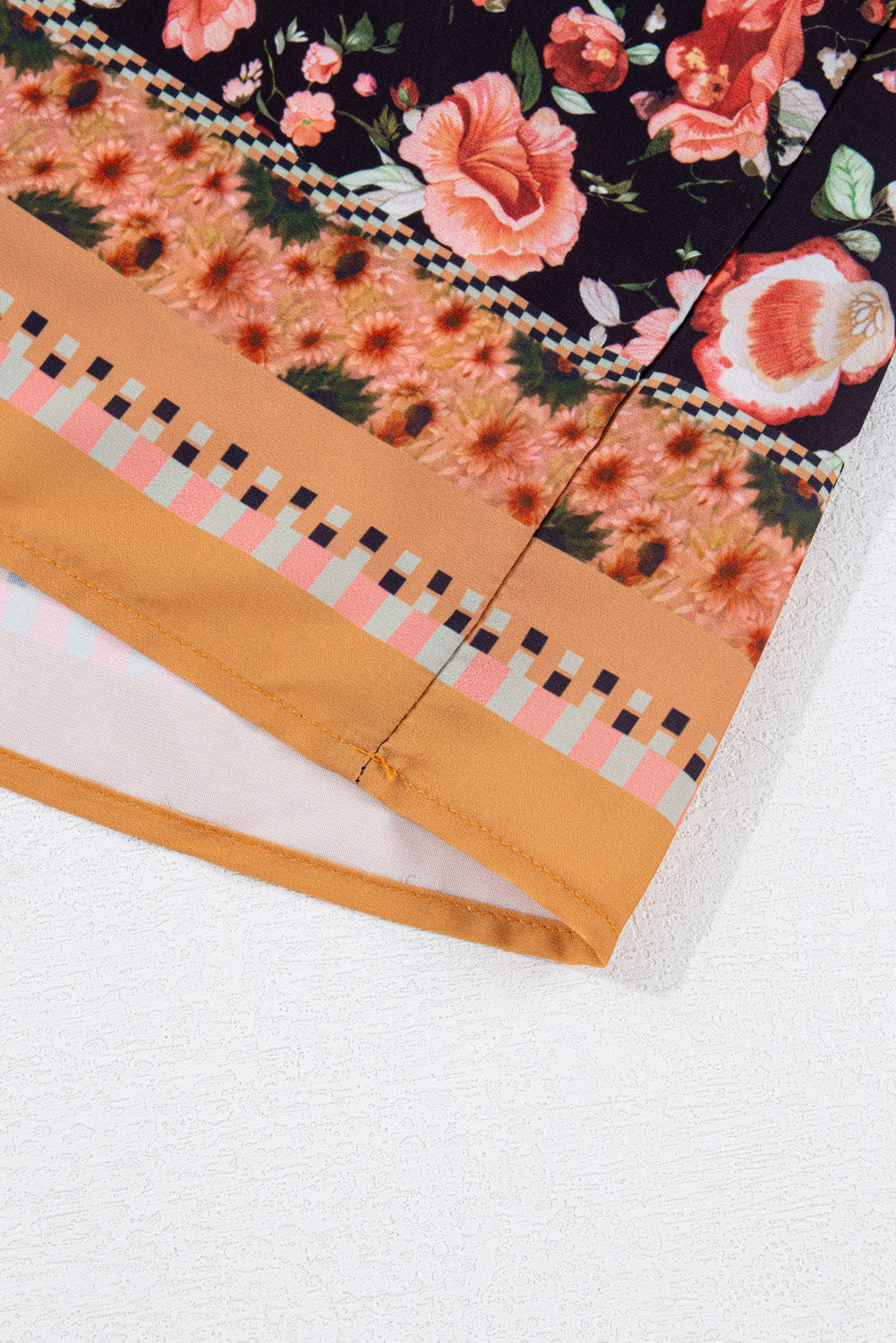 Black Plus Size Paisley Floral Print V Neck Bubble Sleeve Blouse