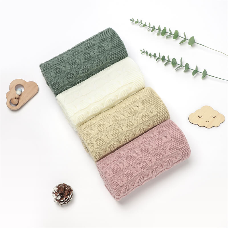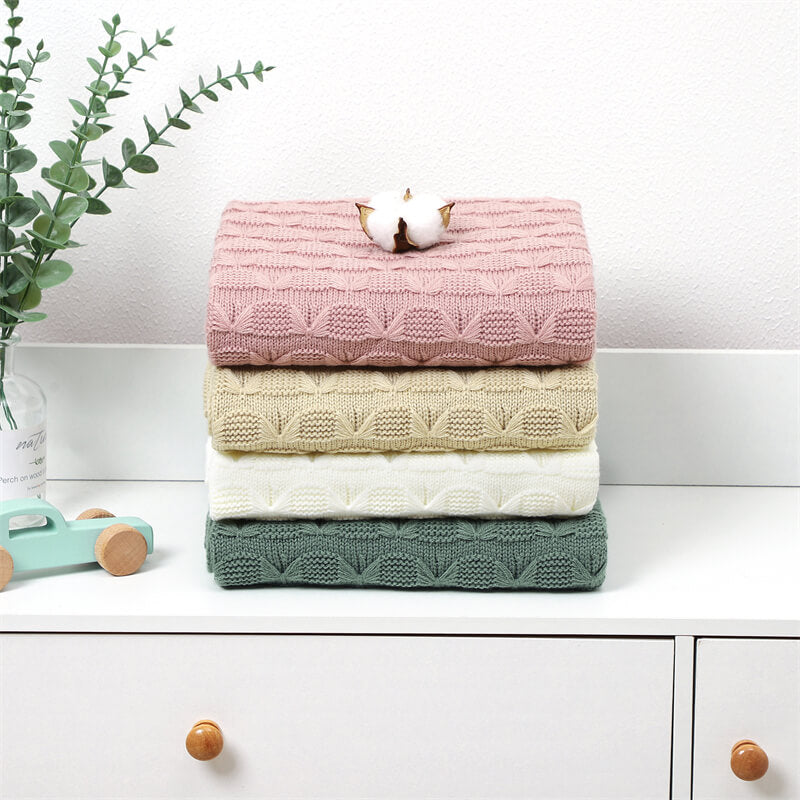 Baby Blanket Neutral Knit Toddler Blankets Organic Cotton Soft Crochet Receiving Baby Blankets for Girls and Boys A032
