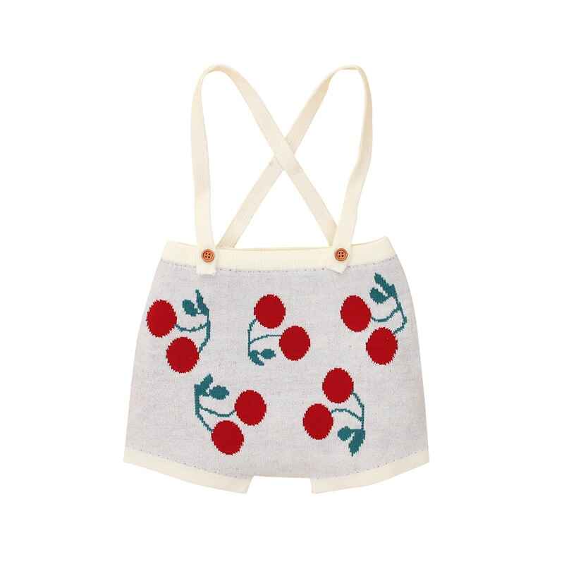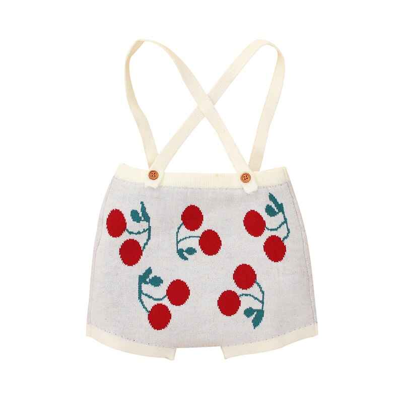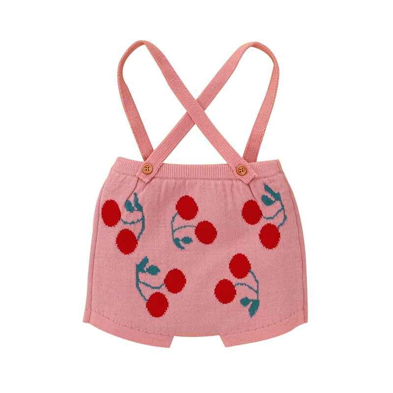 - These cute baby girls' knitted cherry pattern overalls are sure to bring smiles all around! Soft and lightweight, these overalls provide comfort and style for everyday wear. Perfect for any season!
