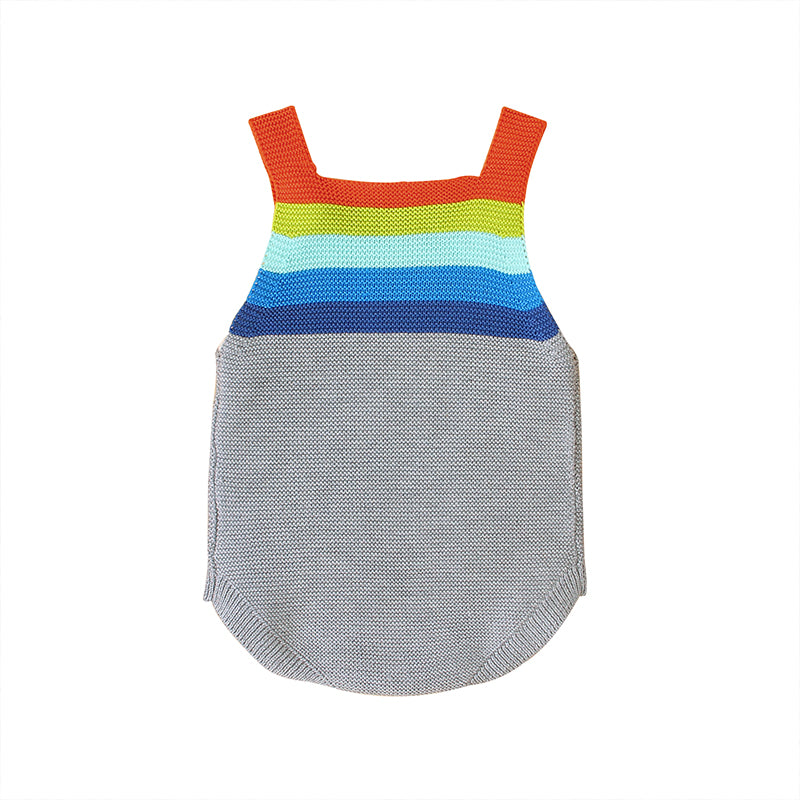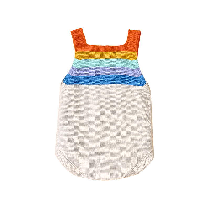 - Treat your little one to this beautiful rainbow-knitted jumpsuit. With a sleeveless design to help cool them down in the summertime, this joyous romper is sure to bring a smile to your child's face!