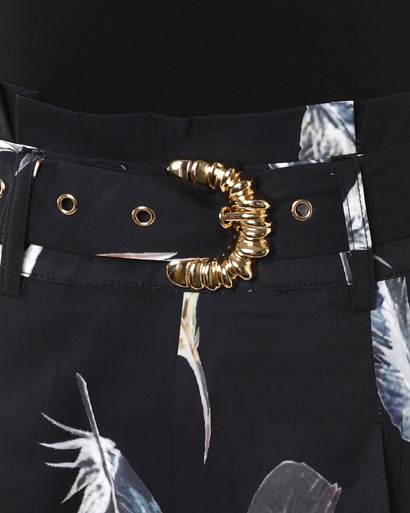 Basic Tank Top & Feather Print Shorts Set With Belt