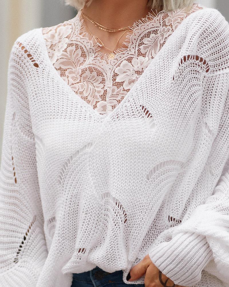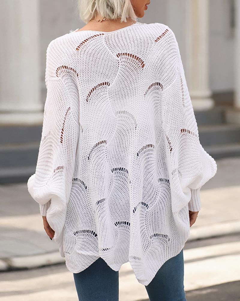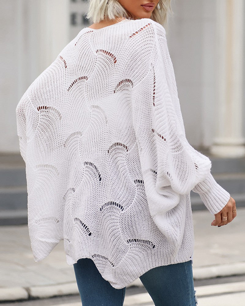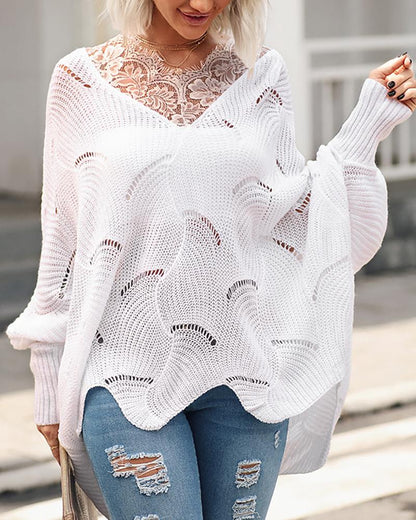 Batwing Sleeve Hollow Out Eyelash Lace Trim Knit Sweater