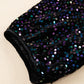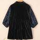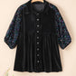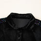 Black Sequin Puff Sleeve Buttoned Velvet Peplum Shirt