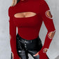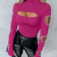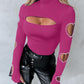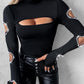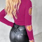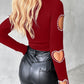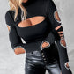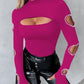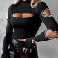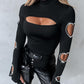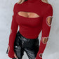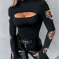 Beaded Decor Cutout Long Sleeve Top