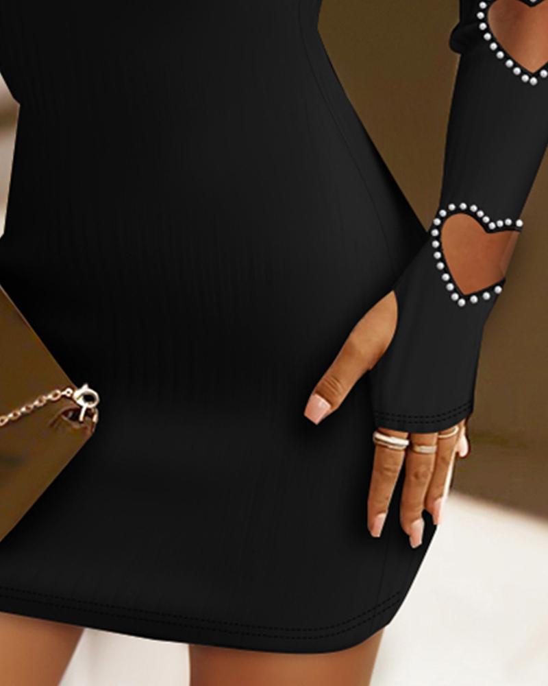 Beaded Hollow Heart Lace Patch Bodycon Dress