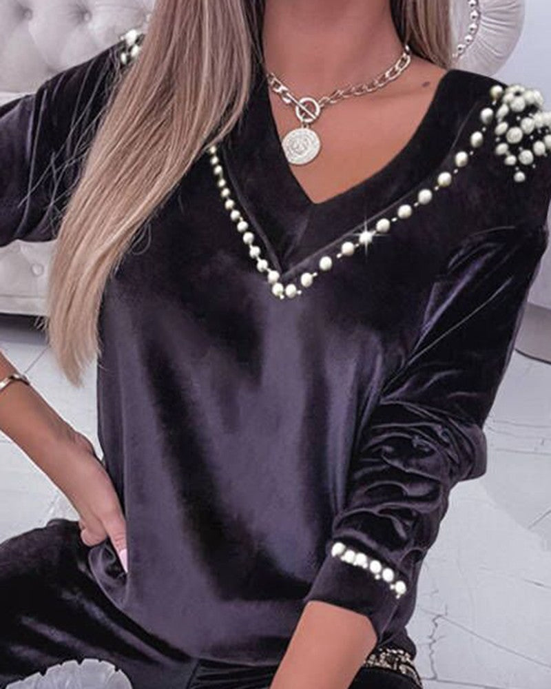 Beaded V Neck Sweatshirt & Cuffed Sweatpants Set