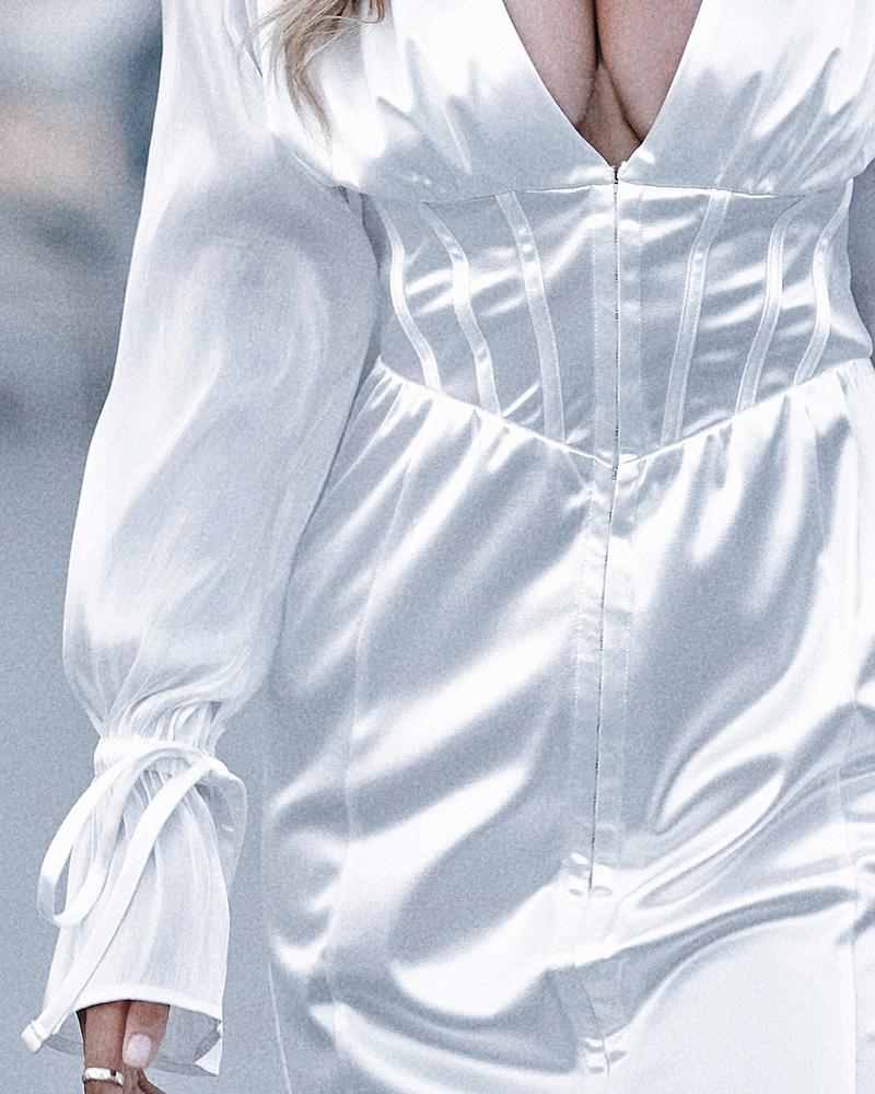 Bell Lantern Sleeve Ruched Corset Bodycon Dress