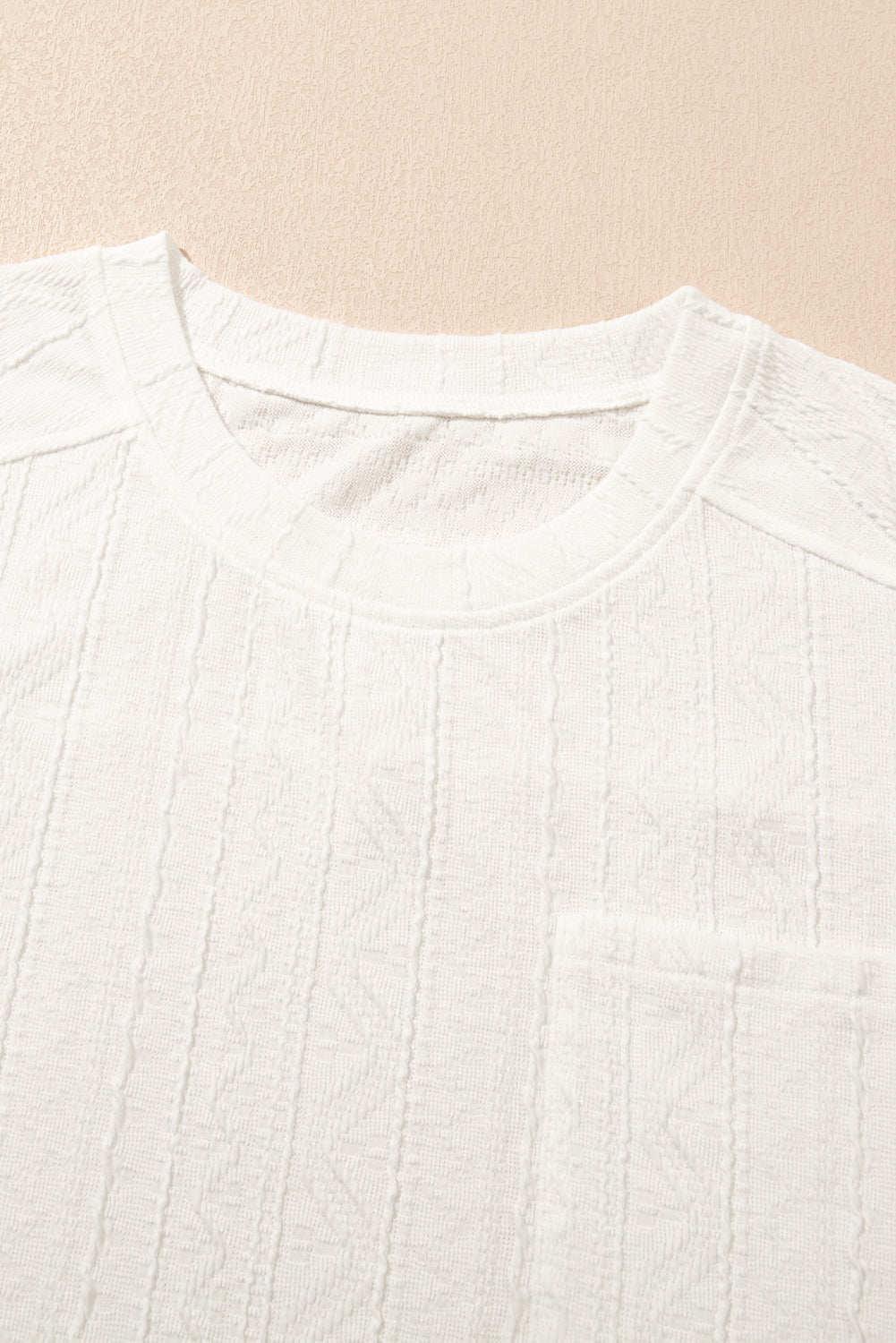 Jet Stream Textured Patched Pocket Short Sleeve Top Drawstring Shorts Set