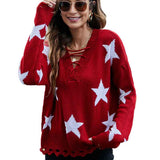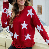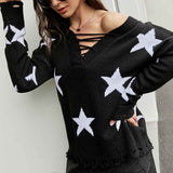 Black Star Patterned Pullover Sweater for Women Comfortable Long Sleeve Tops and Lightweight K608