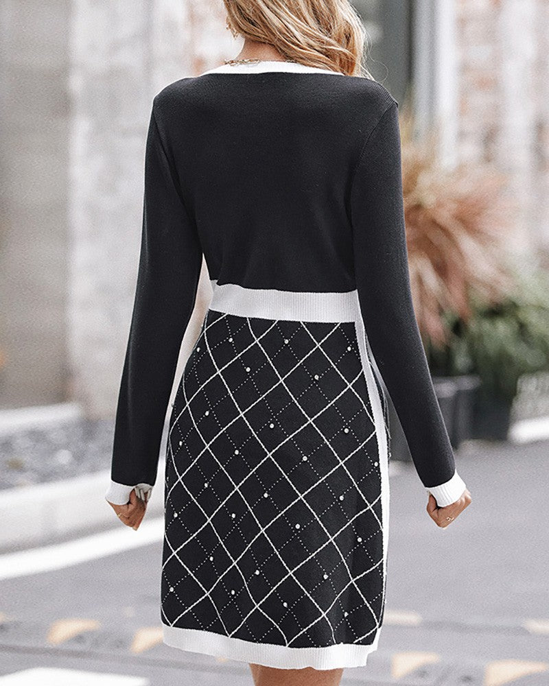 Bowknot Decor Argyle Pattern Knit Work Dress