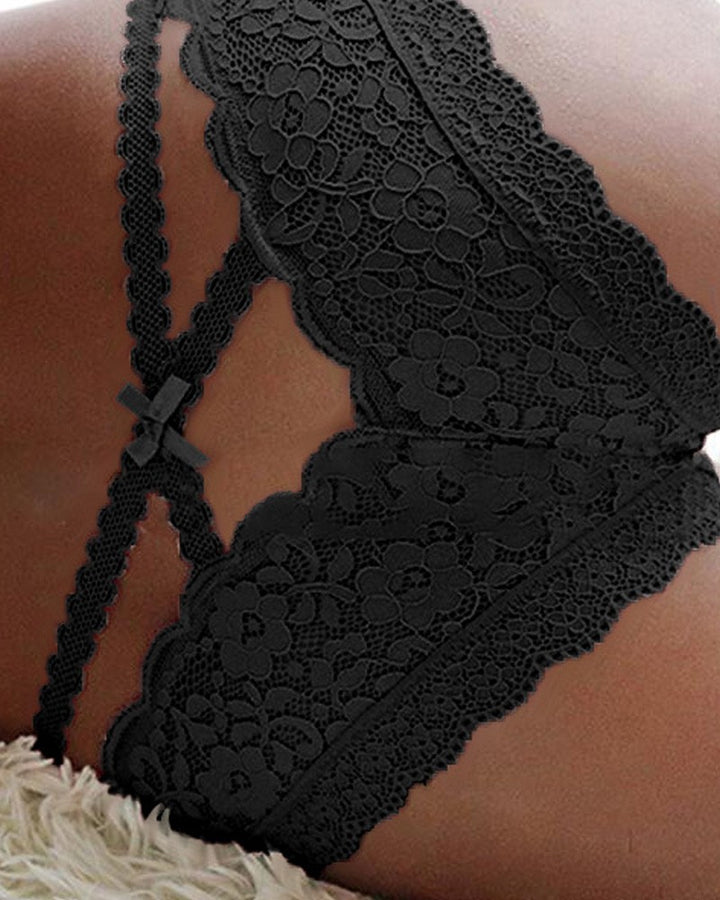 Bowknot Decor Criss Cross Cutout Lace Panty