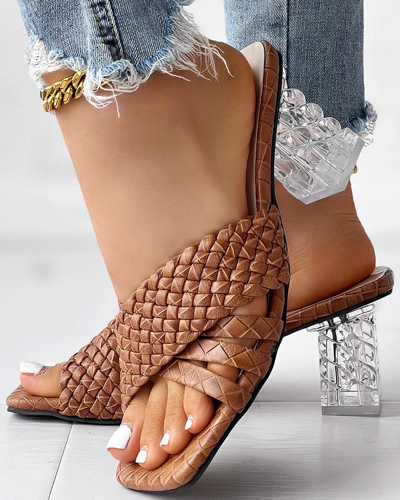 Braided Cross Strap Clear Chunky Heeled Sandals