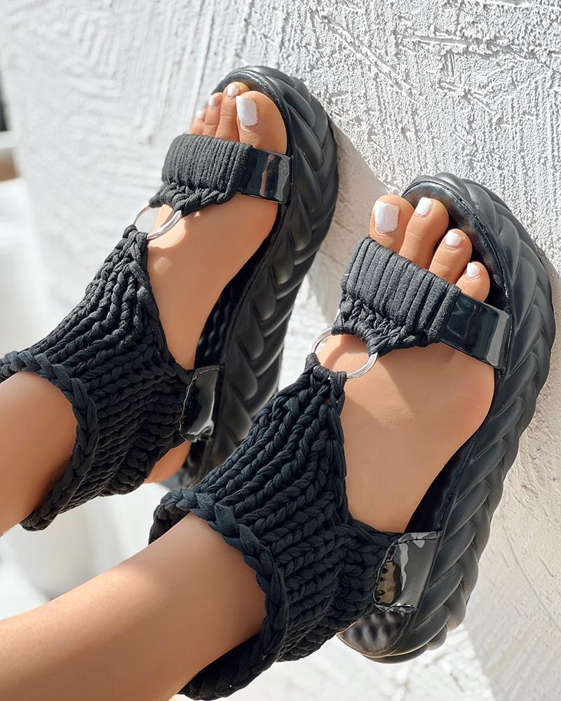 Braided Knit O Ring Cutout Platform Sandals