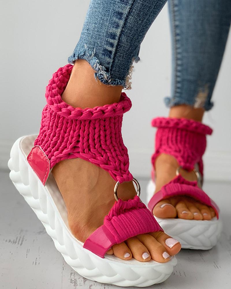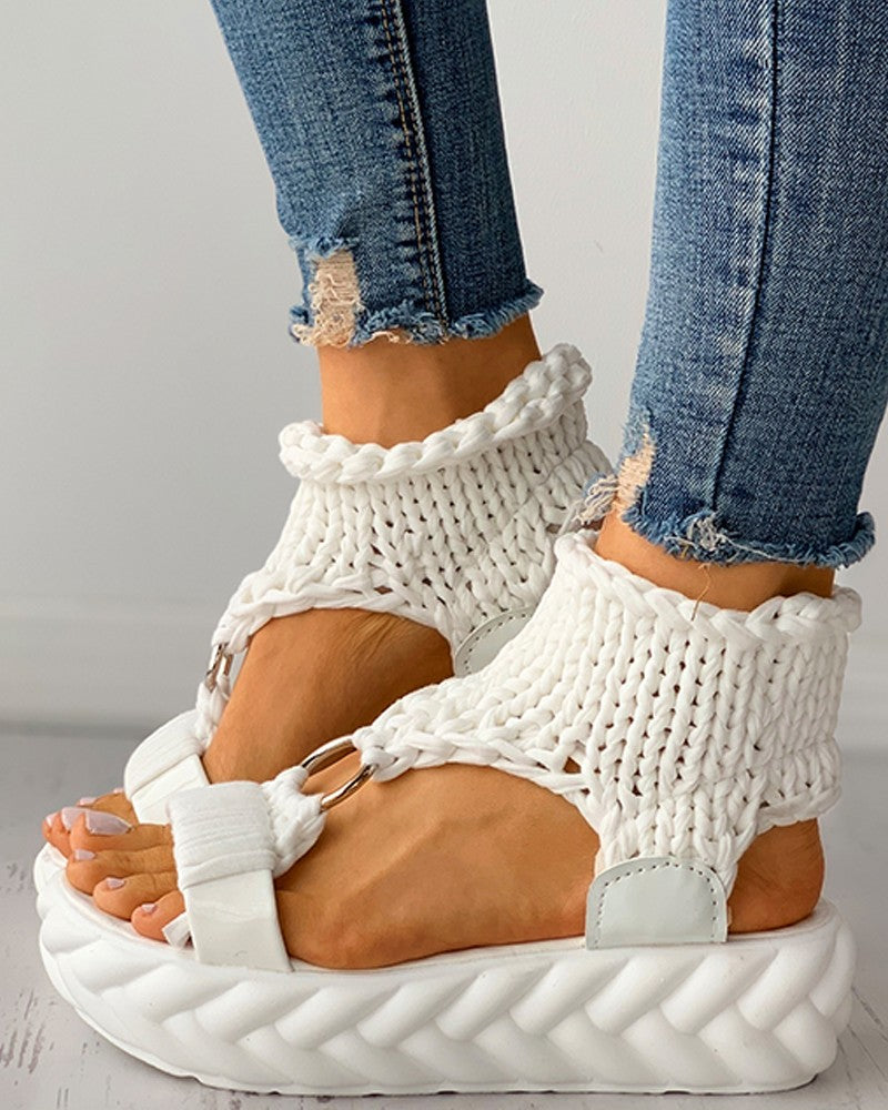 Braided Knit O Ring Cutout Platform Sandals
