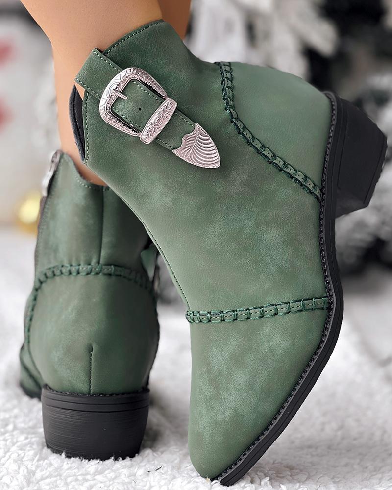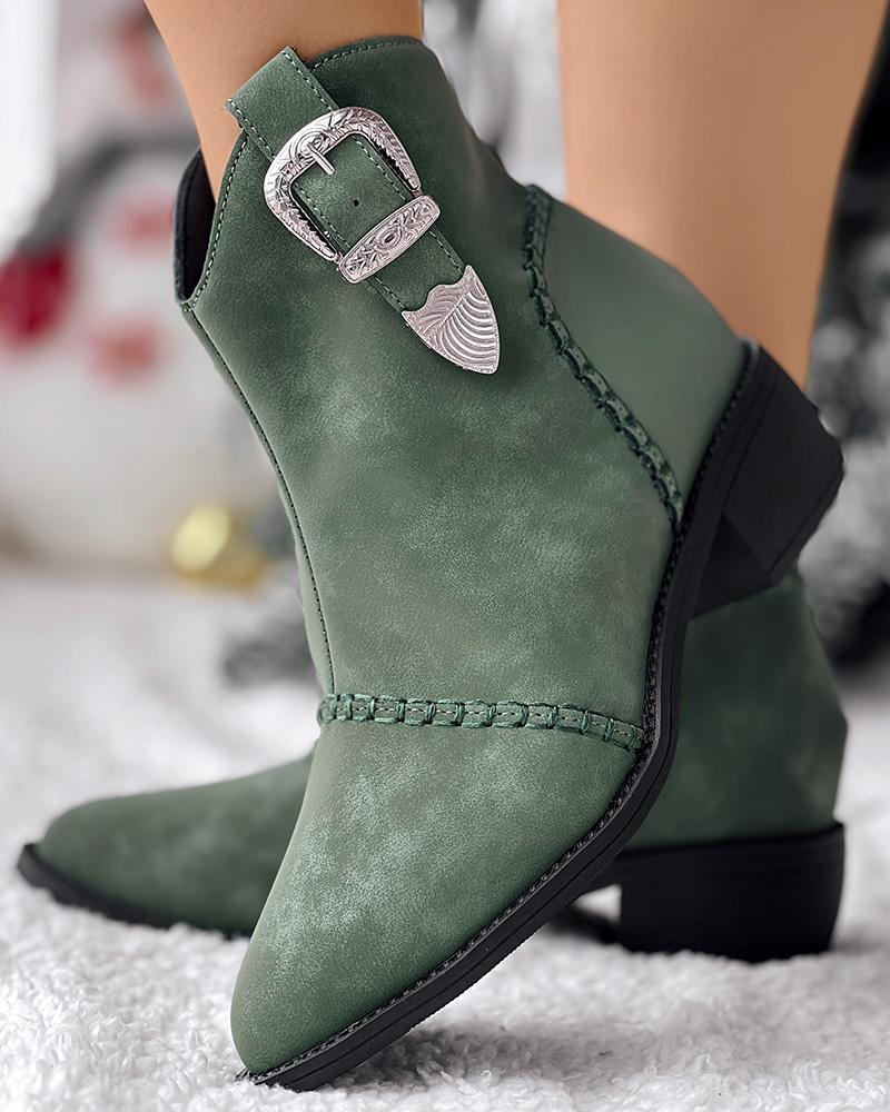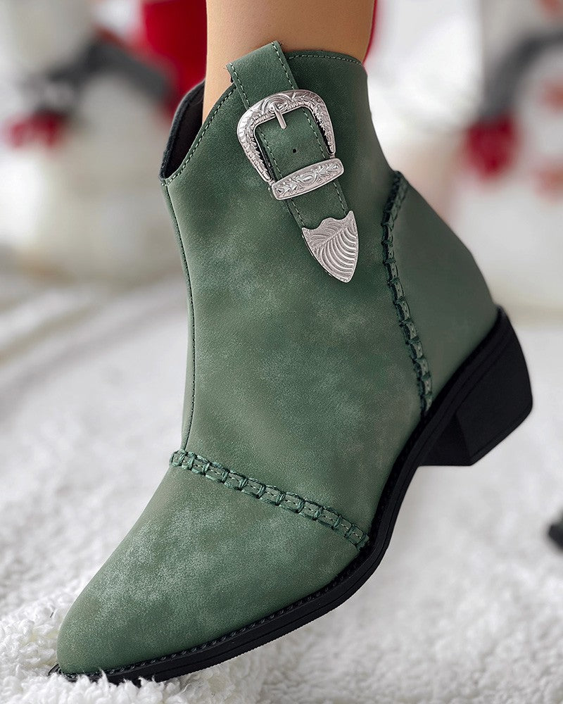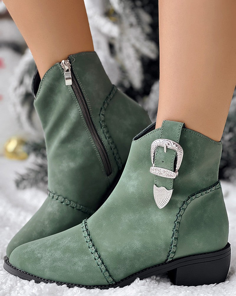 Buckled Chunky Heel Vintage Cowboy Style Ankle Boots
