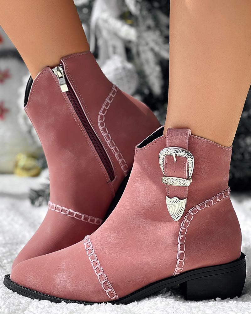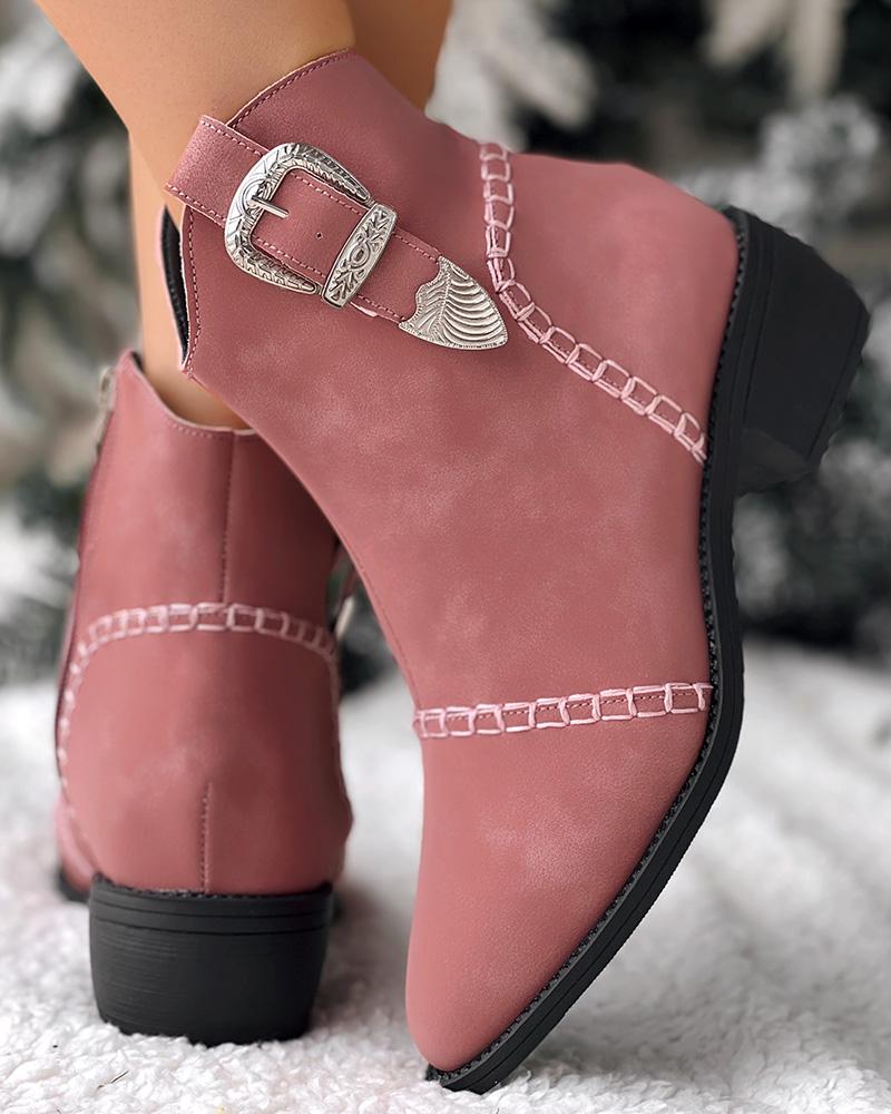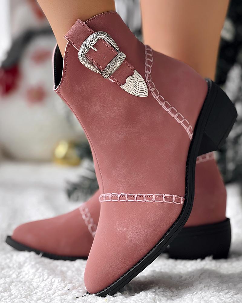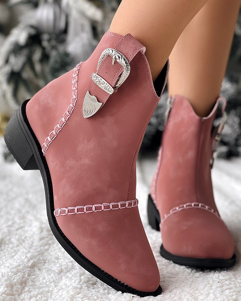 Buckled Chunky Heel Vintage Cowboy Style Ankle Boots