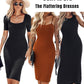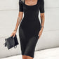 BUILT IN SHAPEWEAR Short Sleeve Square Neck Slim Fit Midi Dress