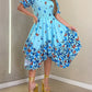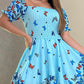 Butterfly Print Off the Shoulder Waist Asymmetrical Hem Dress Casual Shirred A Line Mini Vacation Dress