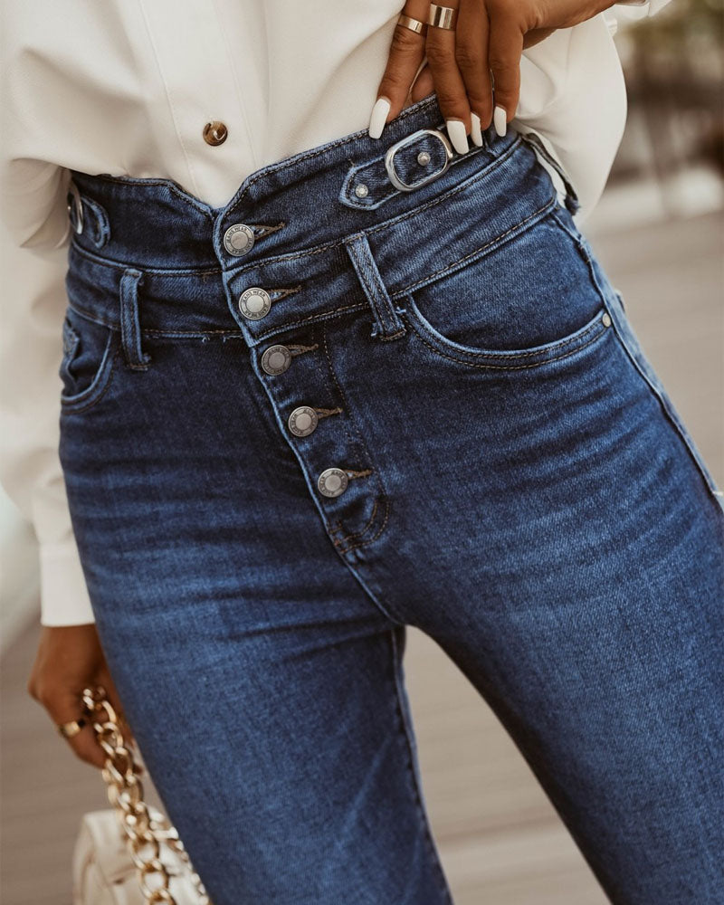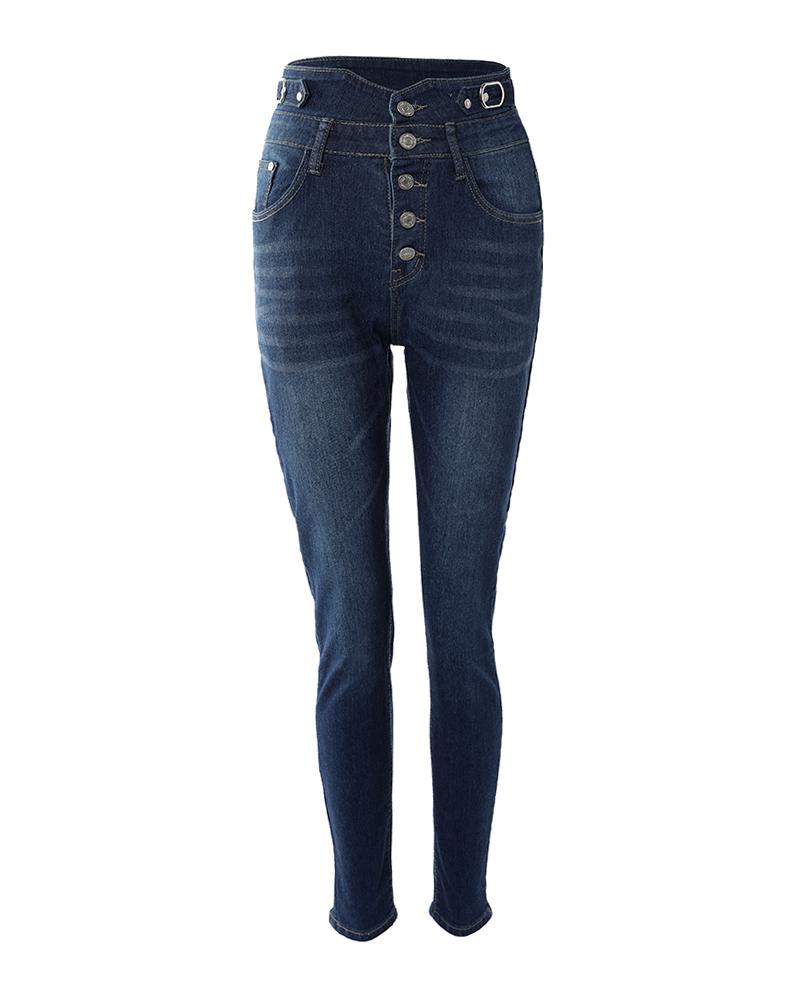 Button Decor High Waist Skinny Jeans