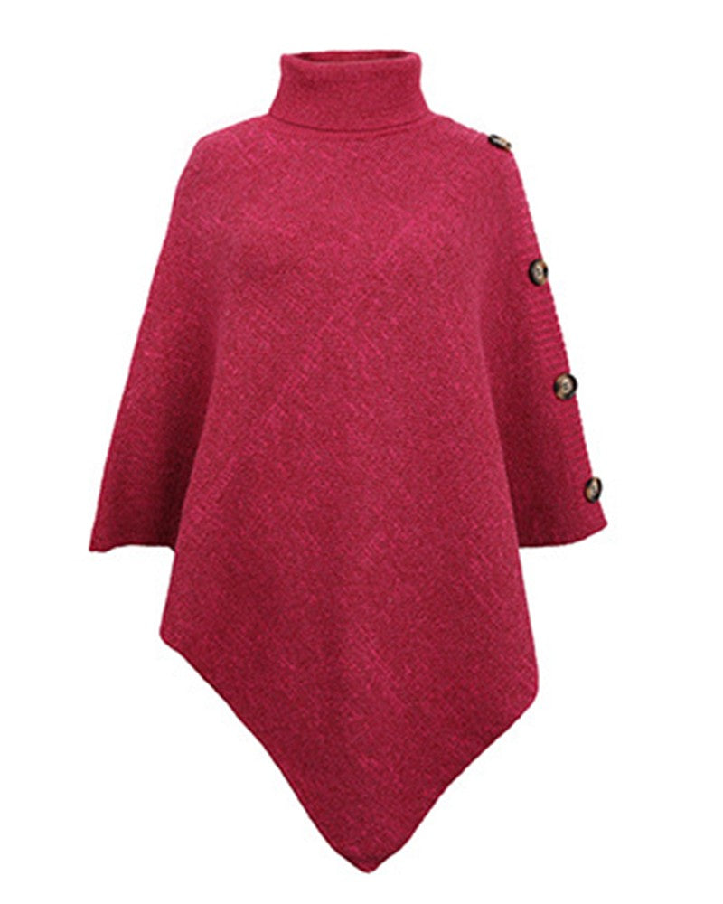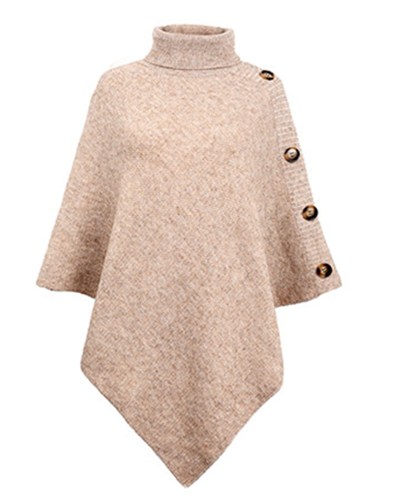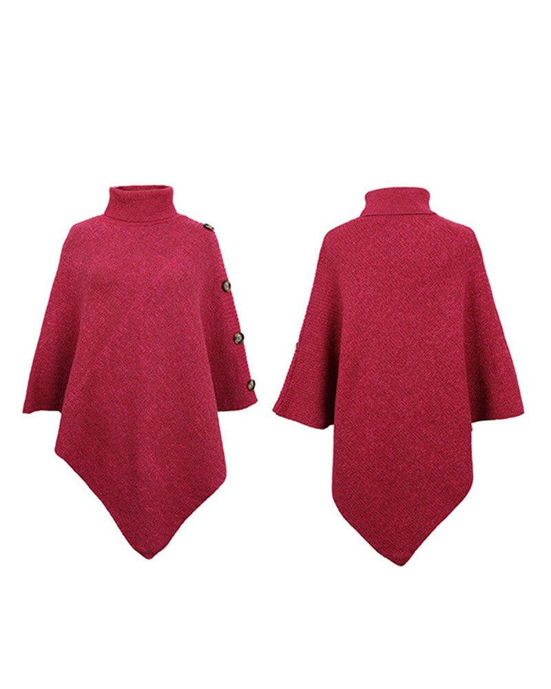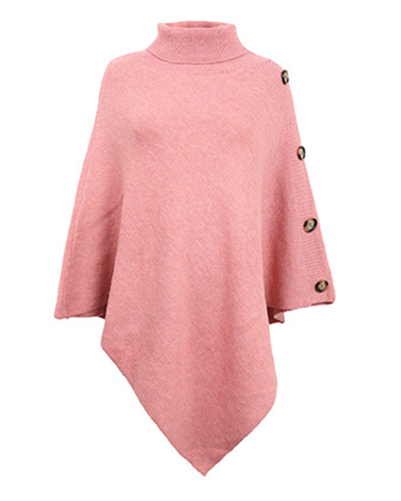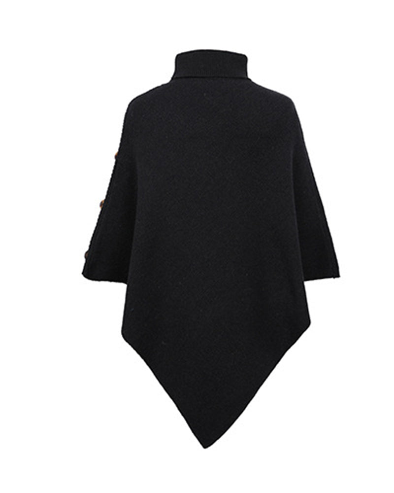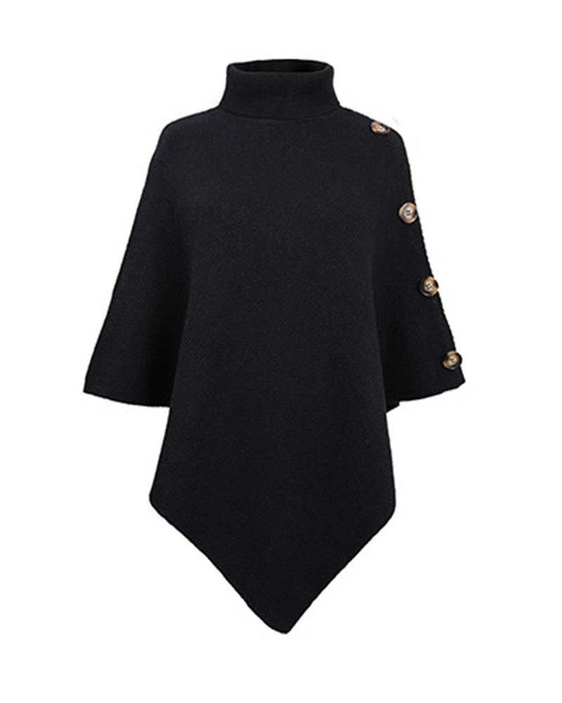 Buttoned Cloak Sleeve Asymmetrical Knit Cape Sweater