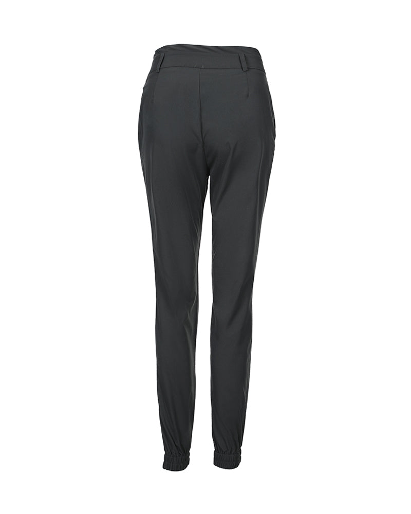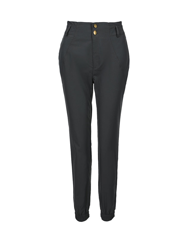 Buttoned Pocket Detail High Waist Cuffed Pants